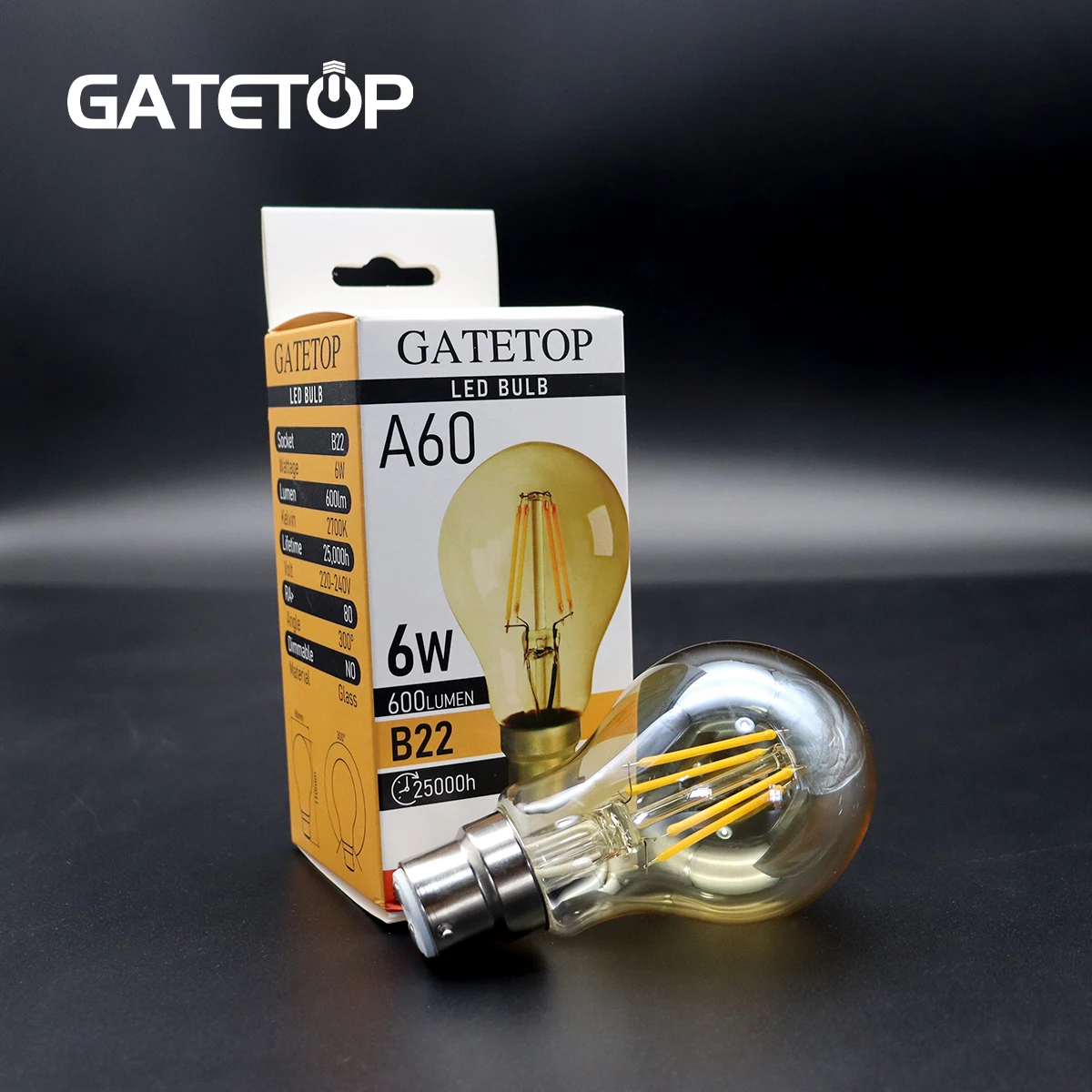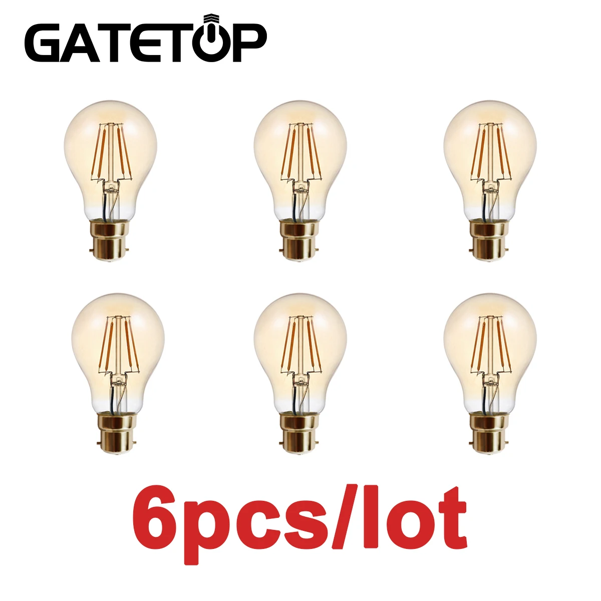 6 шт.лот Ретро лампа накаливания Эдисона A60 6 Вт B22 230 В винтажная лампа 2700 к украшение дома теплый свет стеклянная Светодиодная лампа