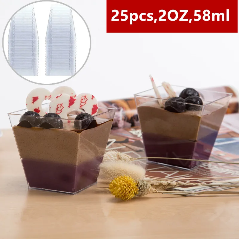 25 шт., многоразовые пластиковые чашки для десертов, 2 унции, 60 мл