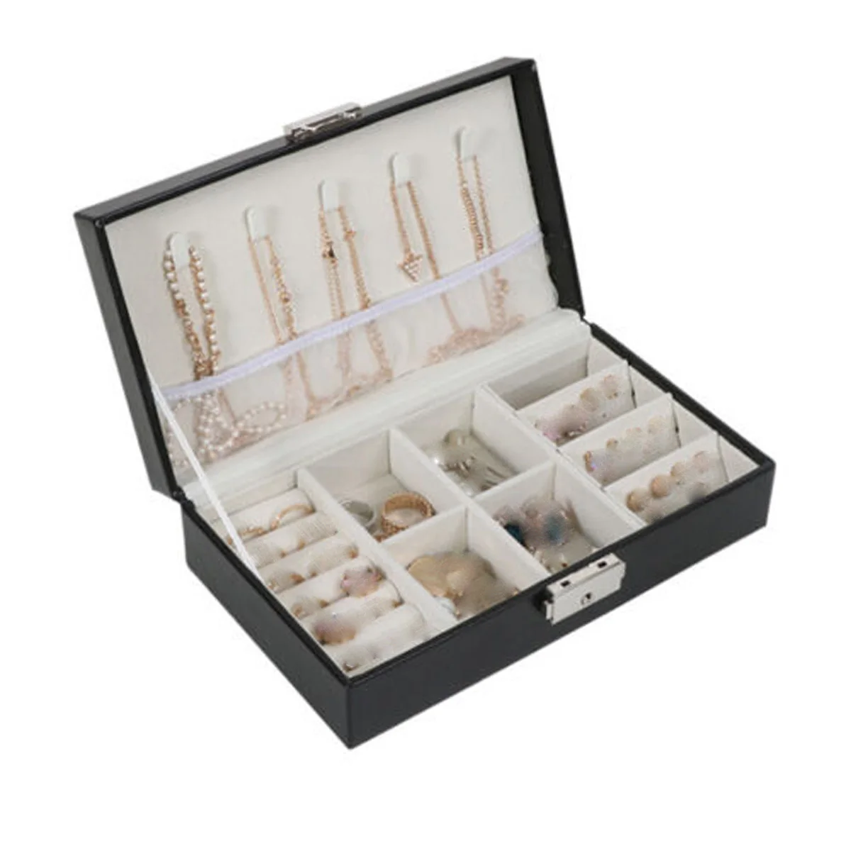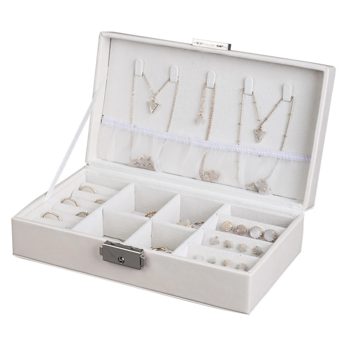 Портативный кожаная коробка для ювелирных украшений, кольцо и серьги колье Дисплей лоток бархатный чехол для хранения держатель Организатор