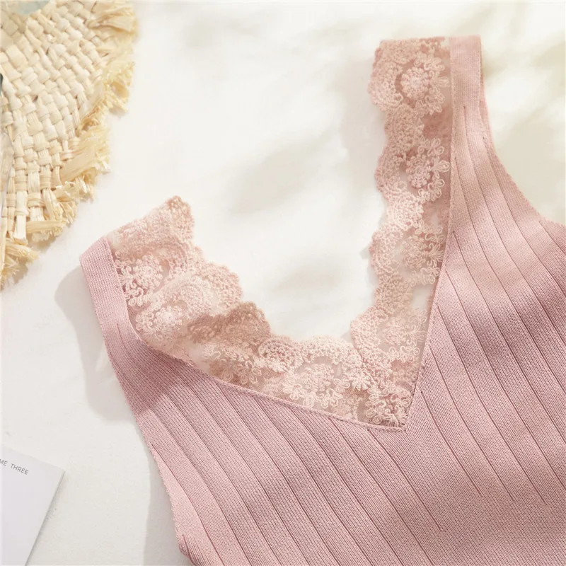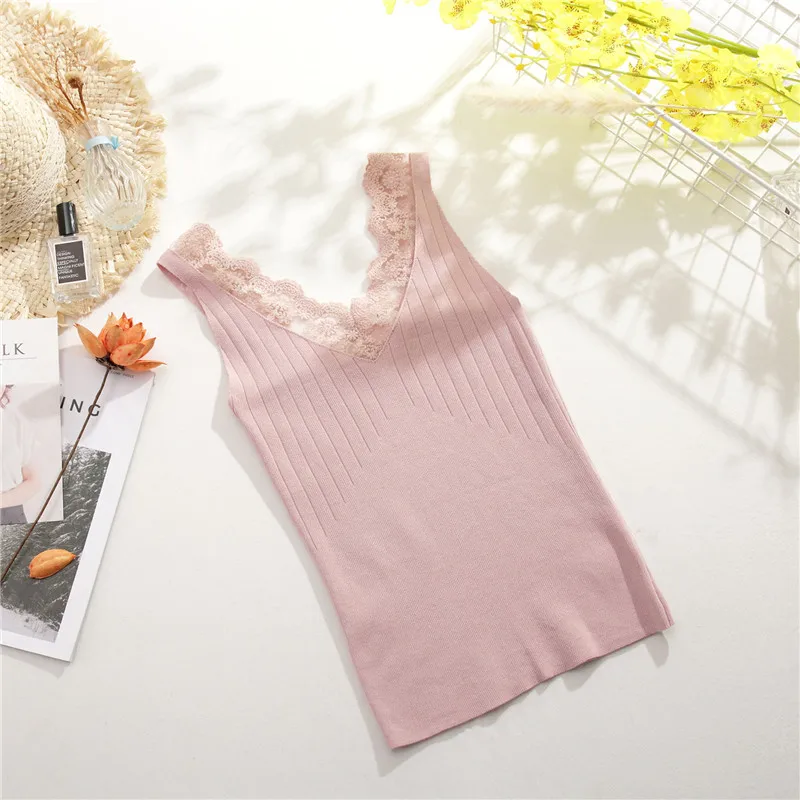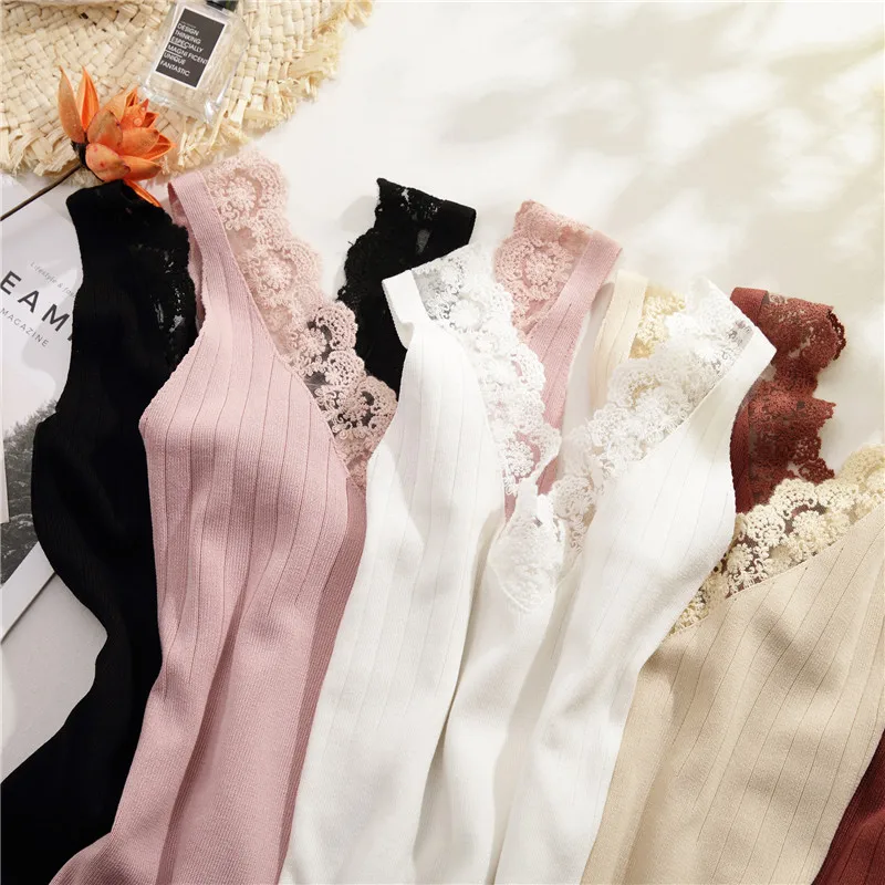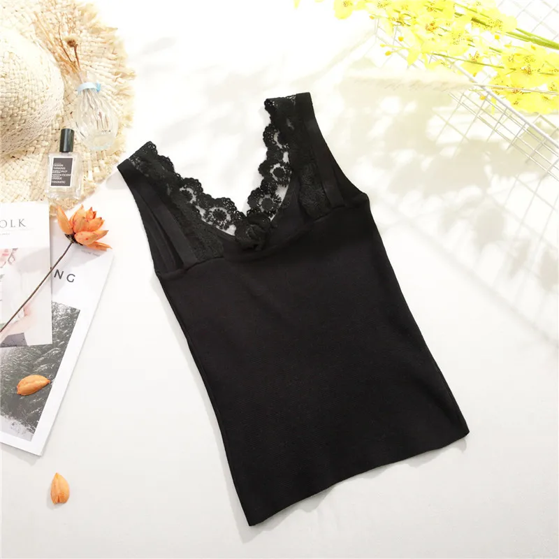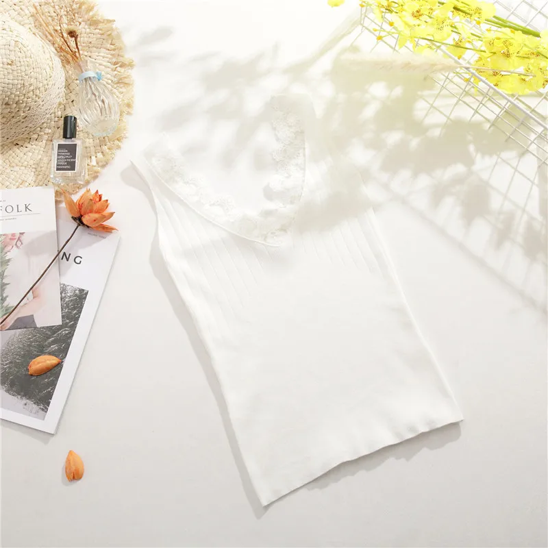 Майка женская кружевная, трикотажная, с V-образным вырезом, эластич...