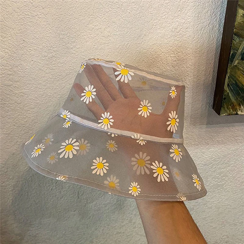 Женская пляжная шляпа с вышивкой ромашки, прозрачная Панама с кружевами и цветами, высокий верх, бейсболка от солнца, лето Модная Маргаритка