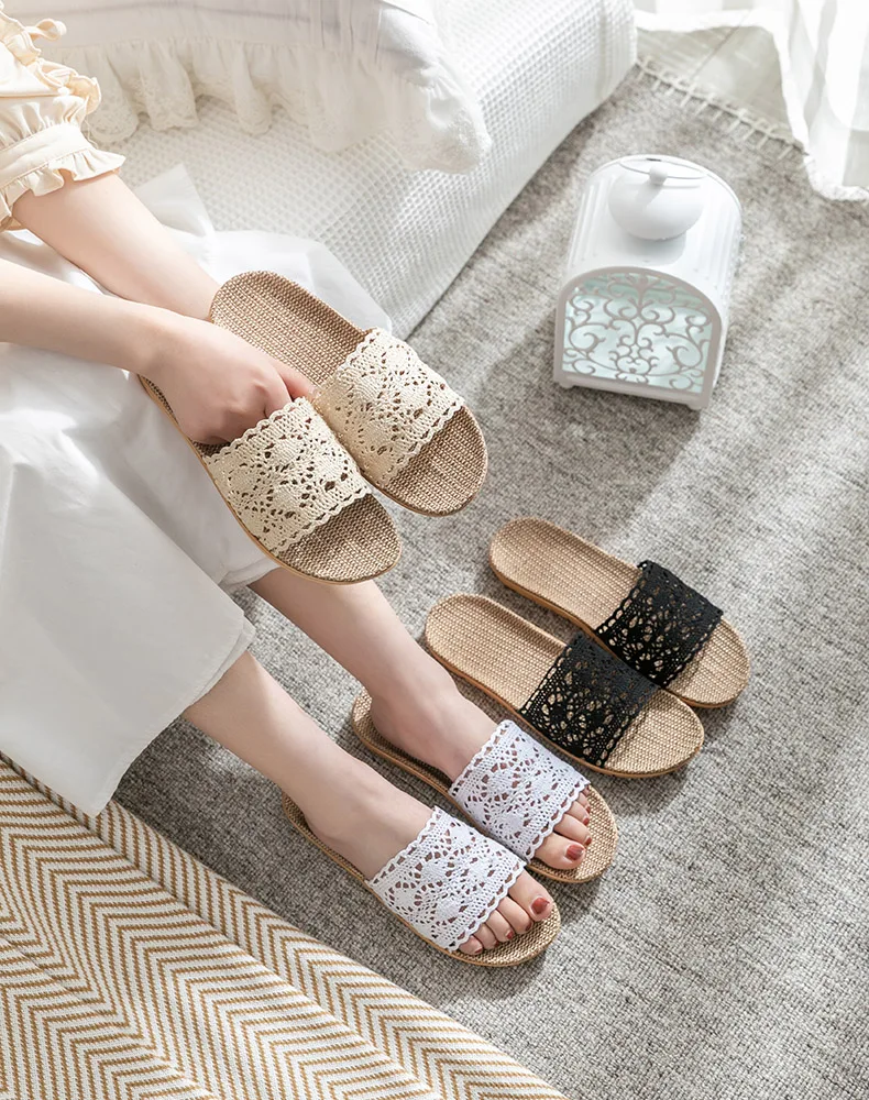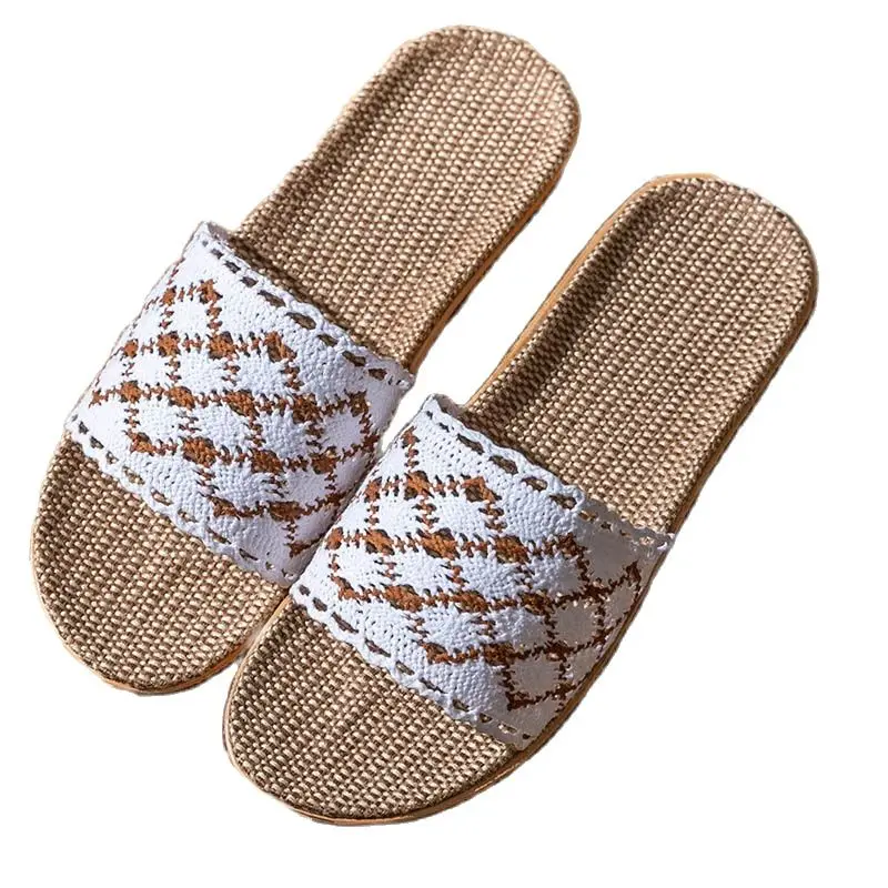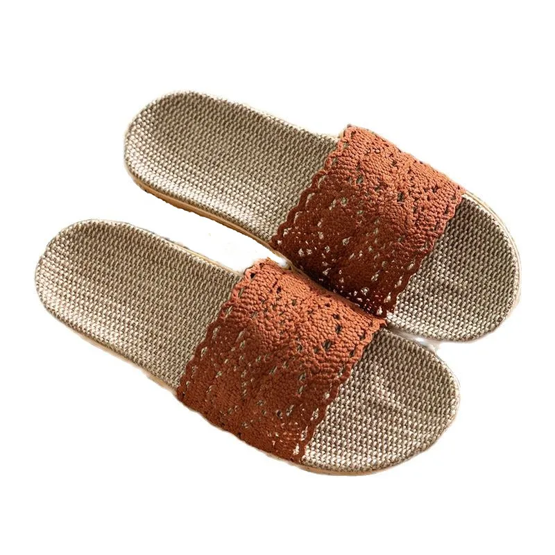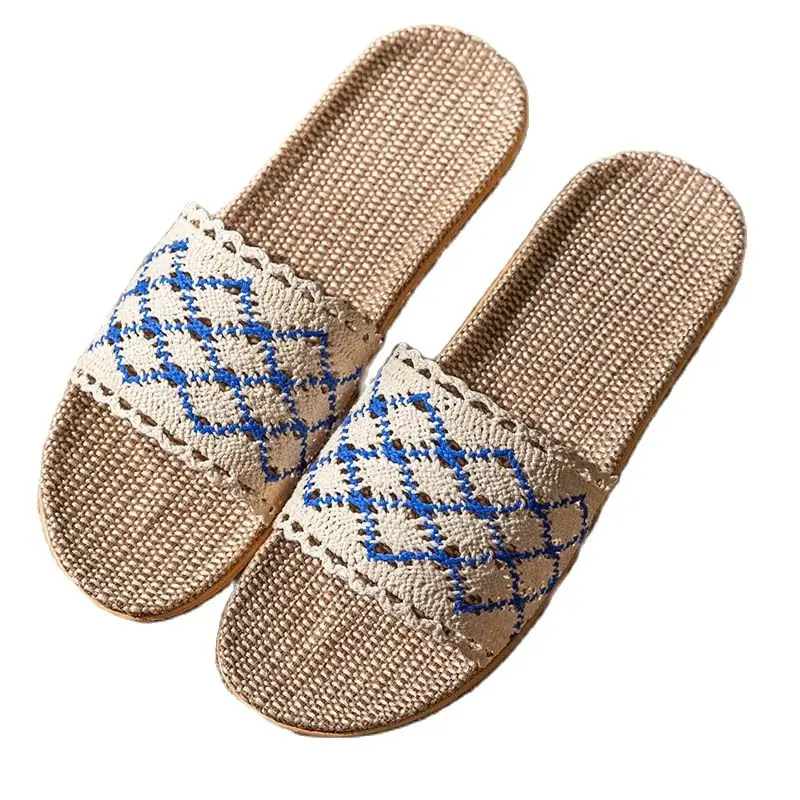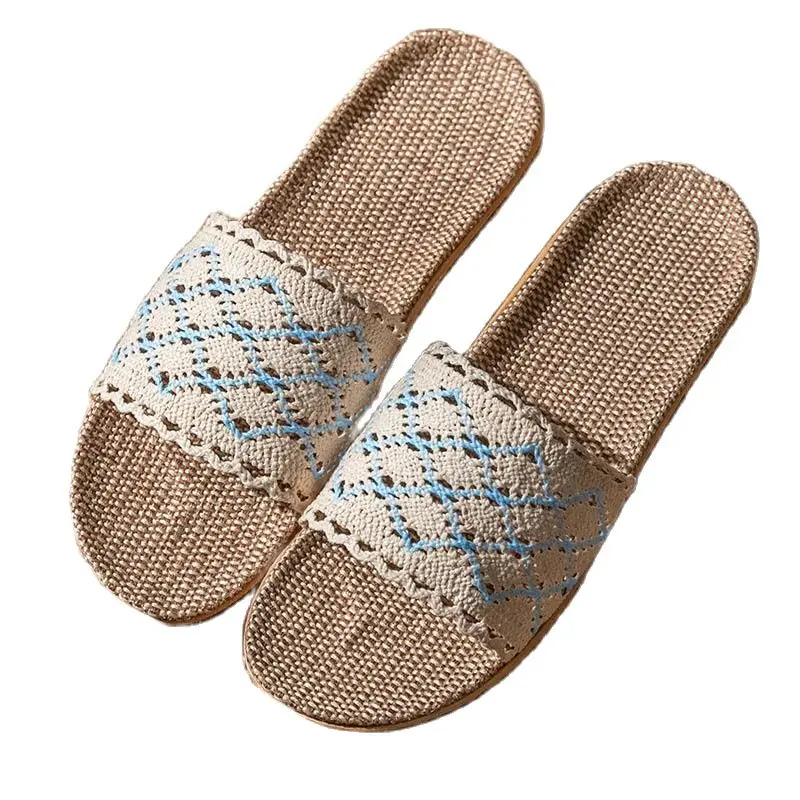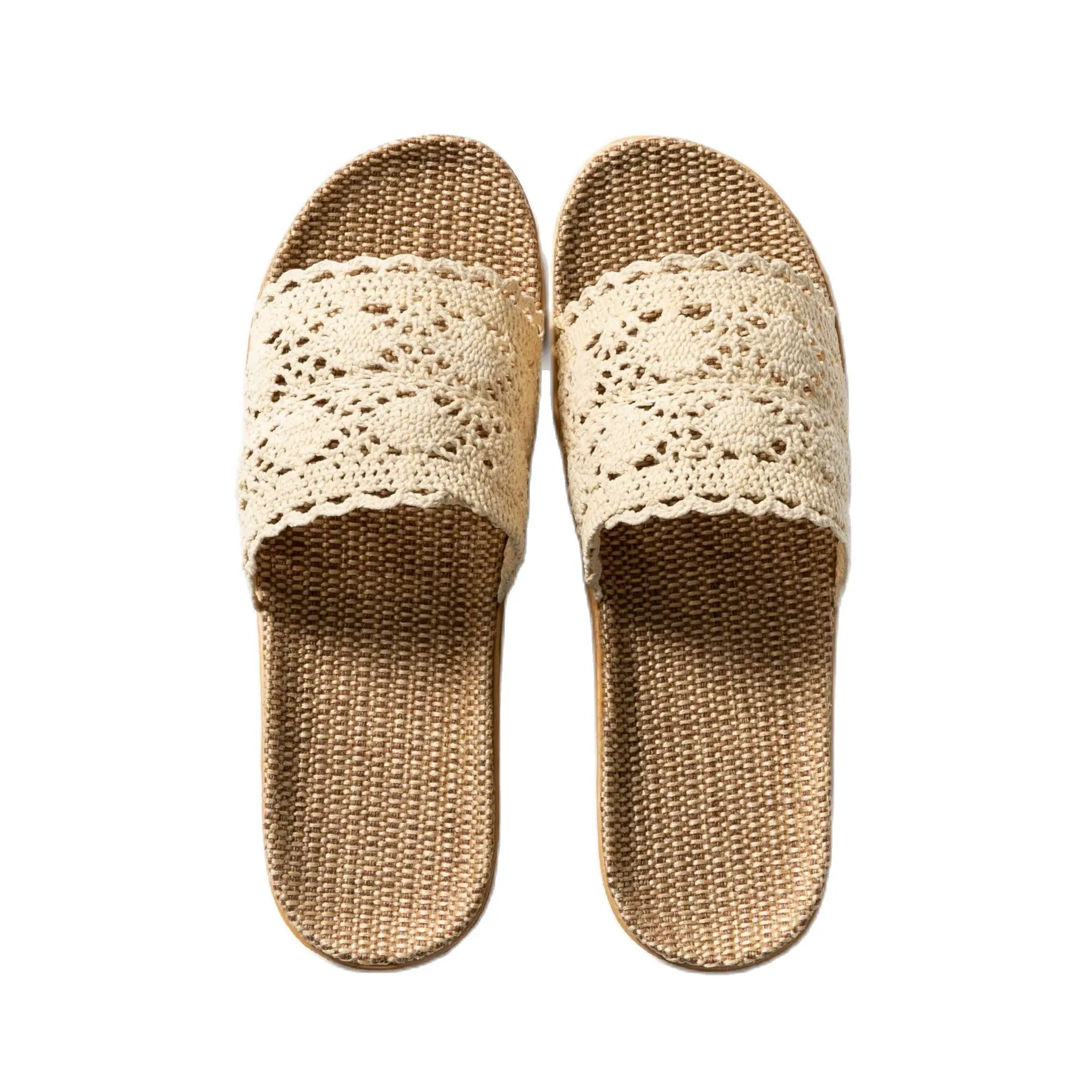 Suihyung2021 г. Новая женская обувь дышащие сетчатые тапочки льняные Женские повседневные шлепанцы на плоской подошве домашние тапочки женские льняные сандалии