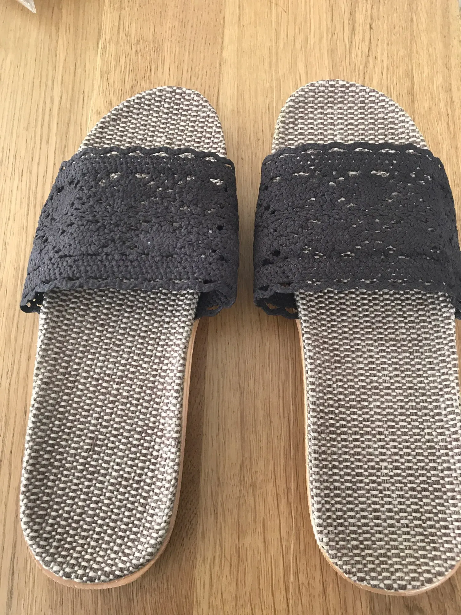 Товар пришел в Беларусь быстро, за три недели. Трек отслеживался. Тапочки понравились, лёгкие, удобные, соответствуют описанию. Верх из ткани, похожей на льняное кружево
