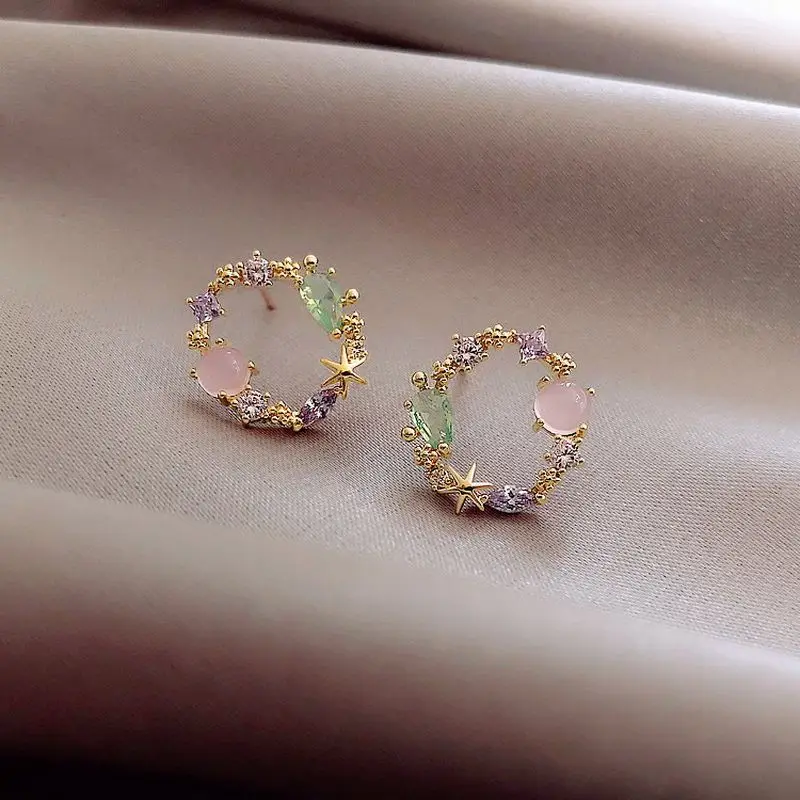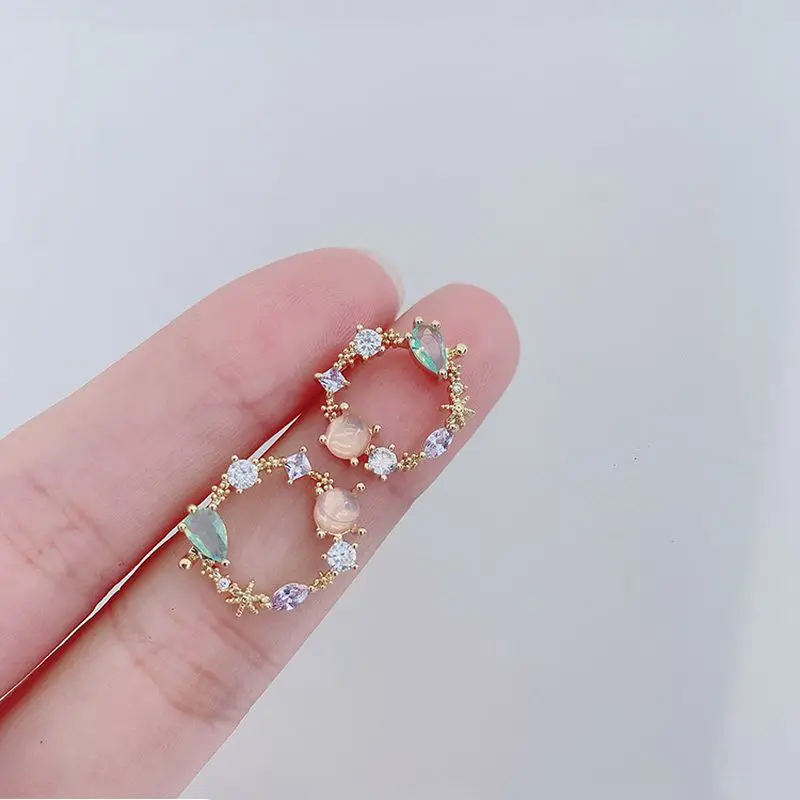 Женские круглые серьги-гвоздики, цветочные круглые серьги, стразы, ювелирные изделия, подарок для вечевечерние, 2021