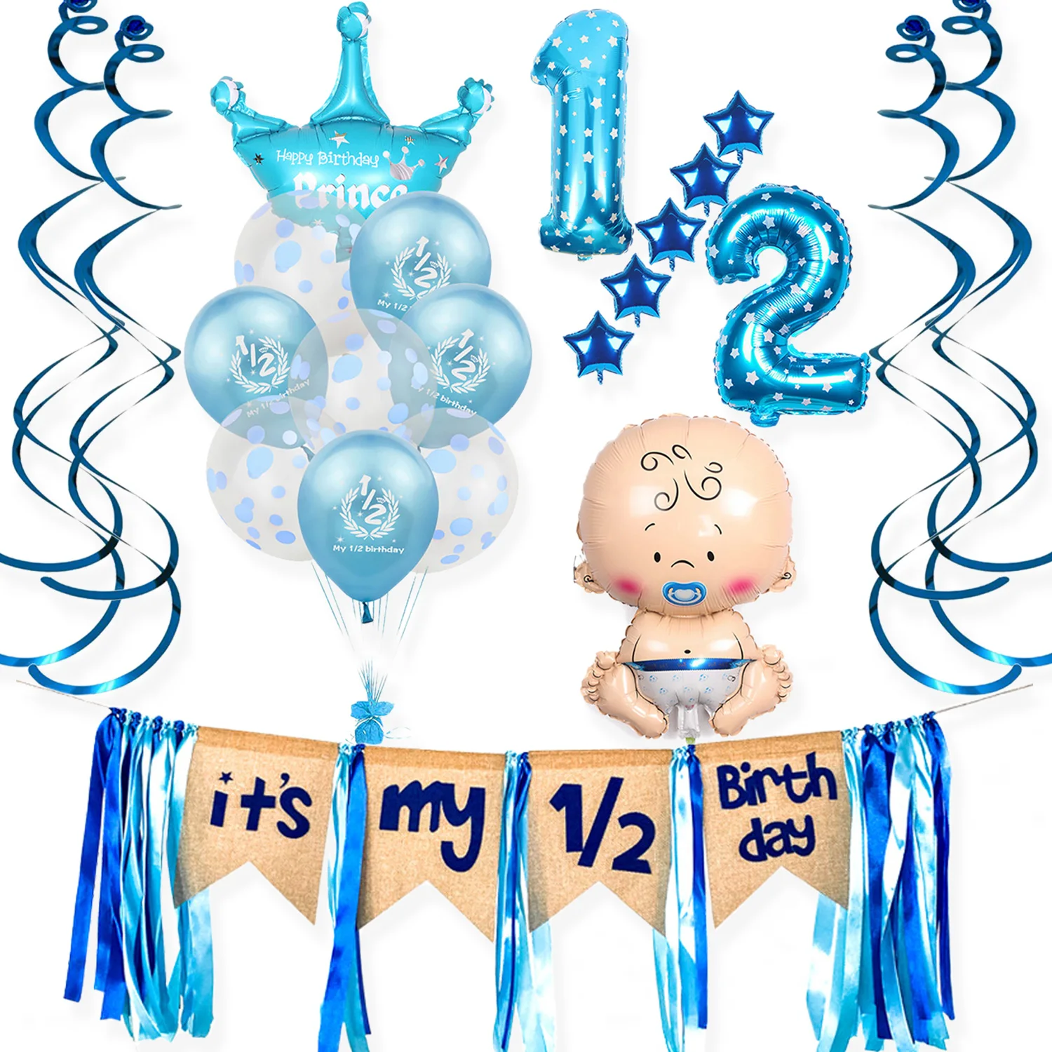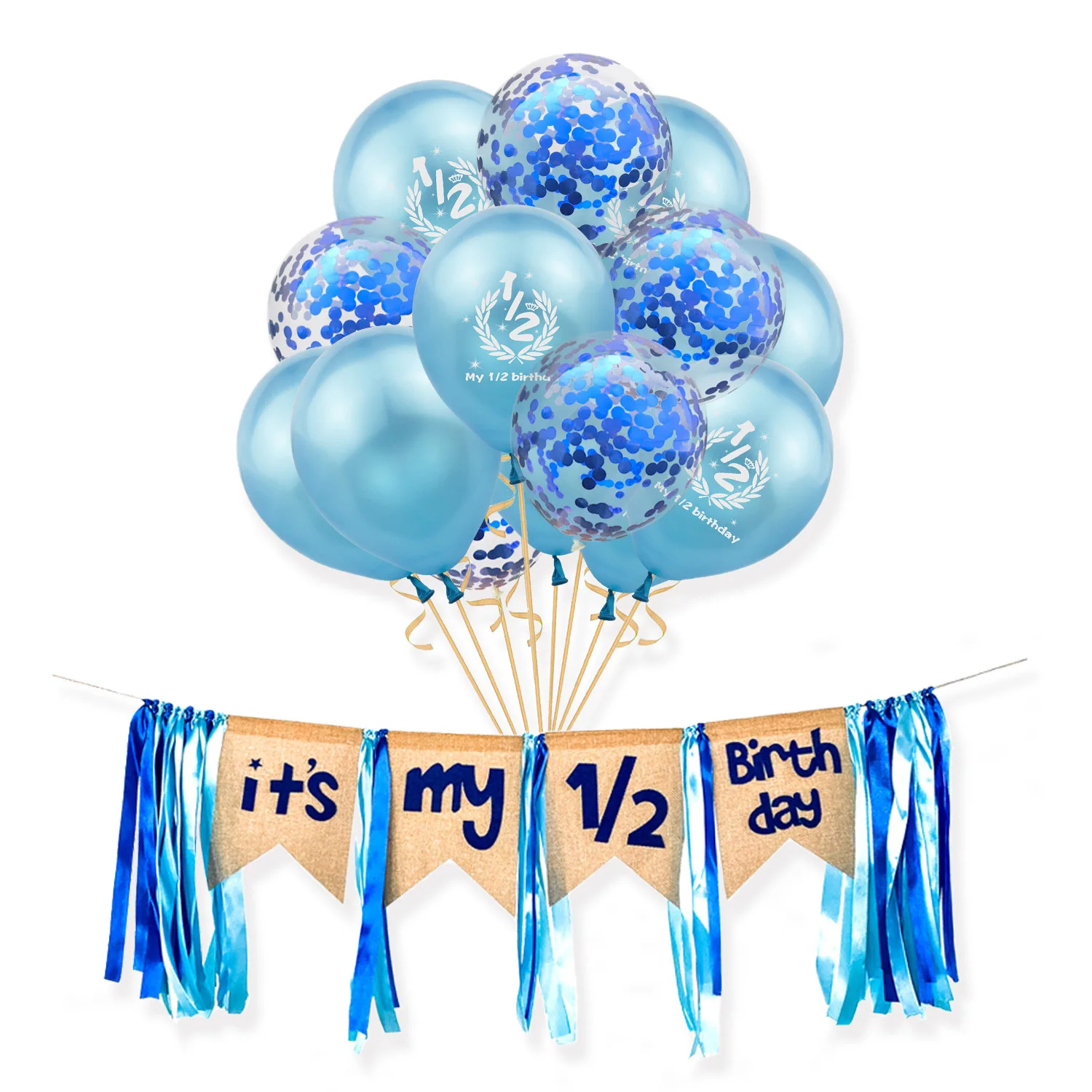 Для мальчиков и девочек, 1/2, украшения для дня рождения, для полулетних баннеров, воздушные шары для детского душа, для детей 6 месяцев, половина дня рождения, декор для вечеринки, 73D