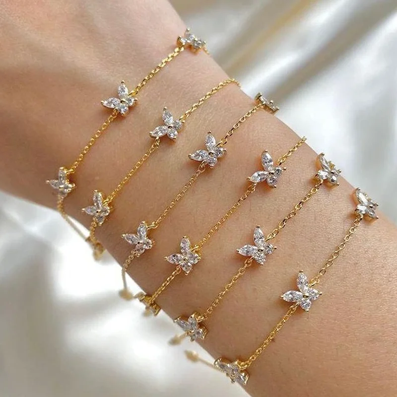 Женский блестящий браслет с фианитами, цепочка со звеньями животных, браслеты с бабочками
