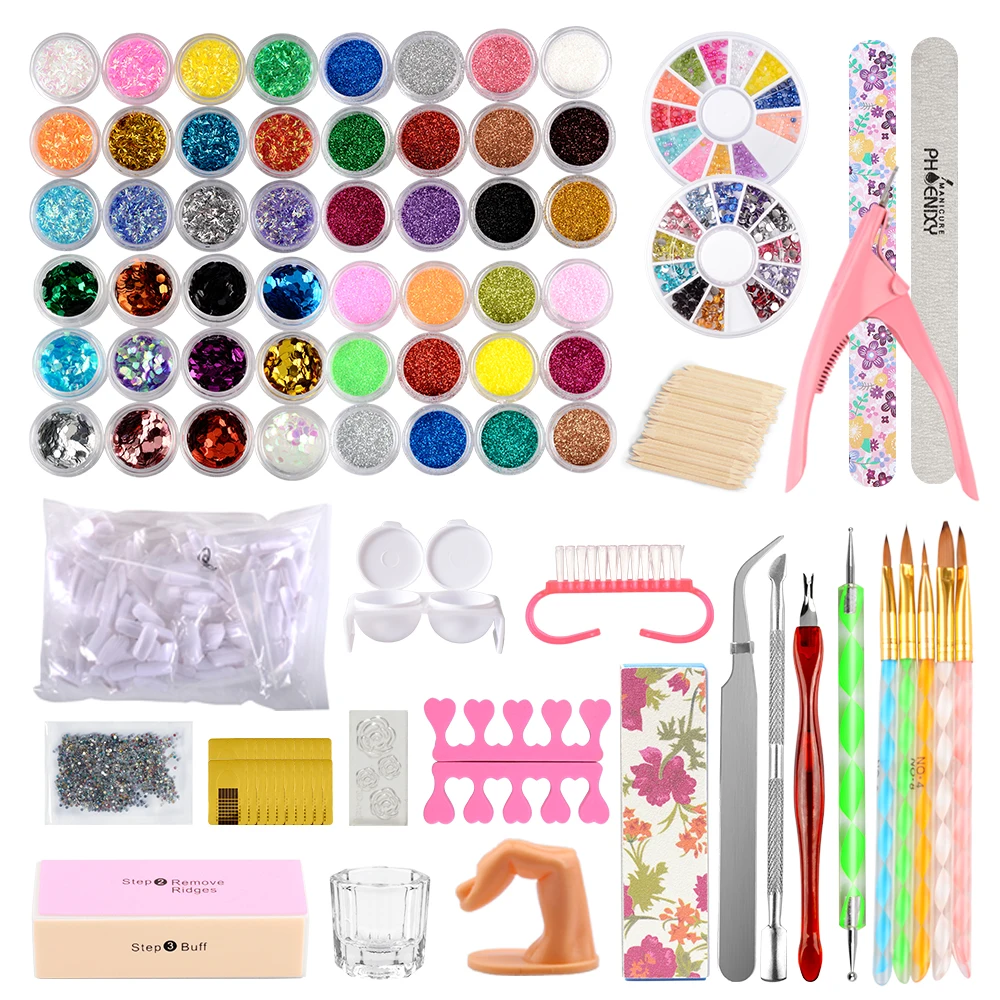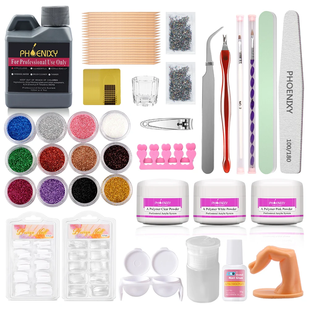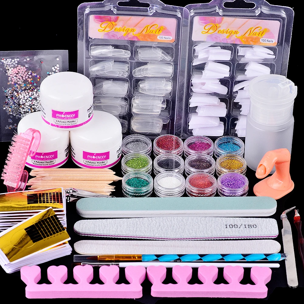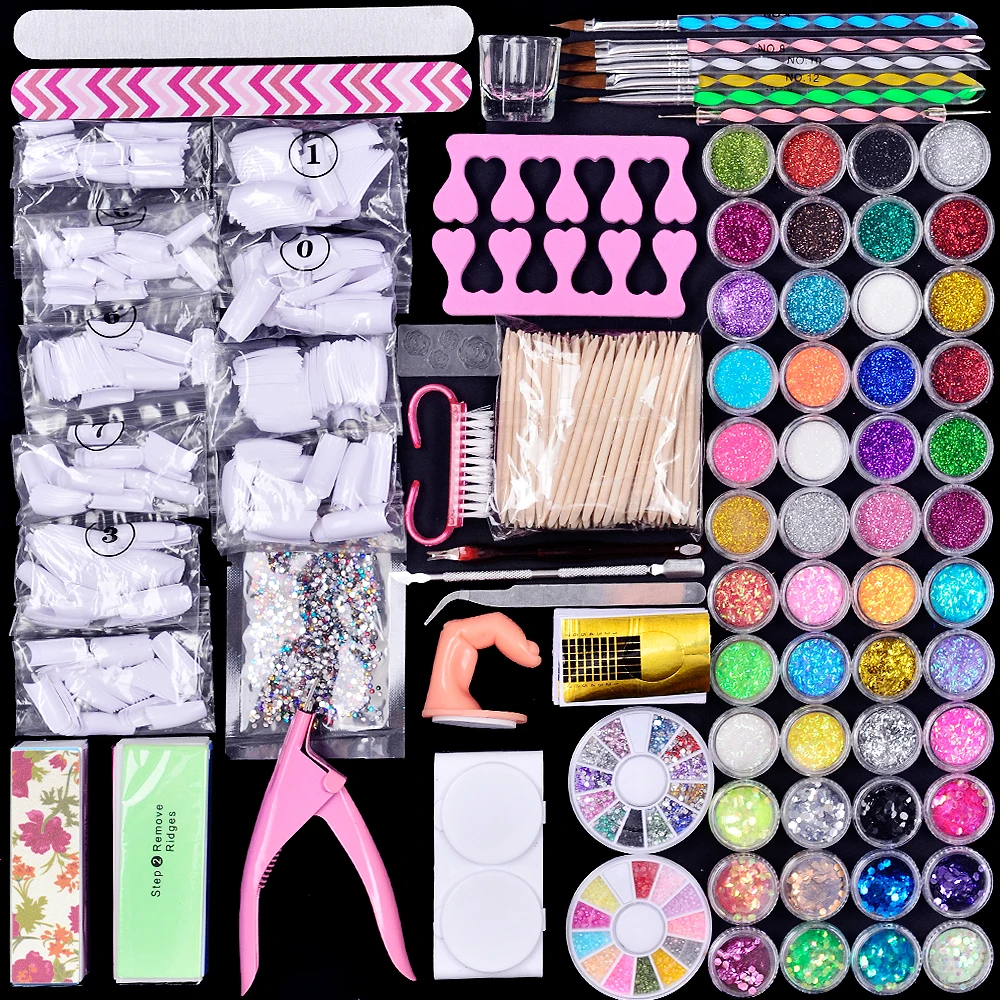 Набор для акриловых ногтей, гель и акрил, полный набор, Полупостоянный набор для ногтей, акриловый набор для ногтей, пудра, глиттер, полный набор для маникюра