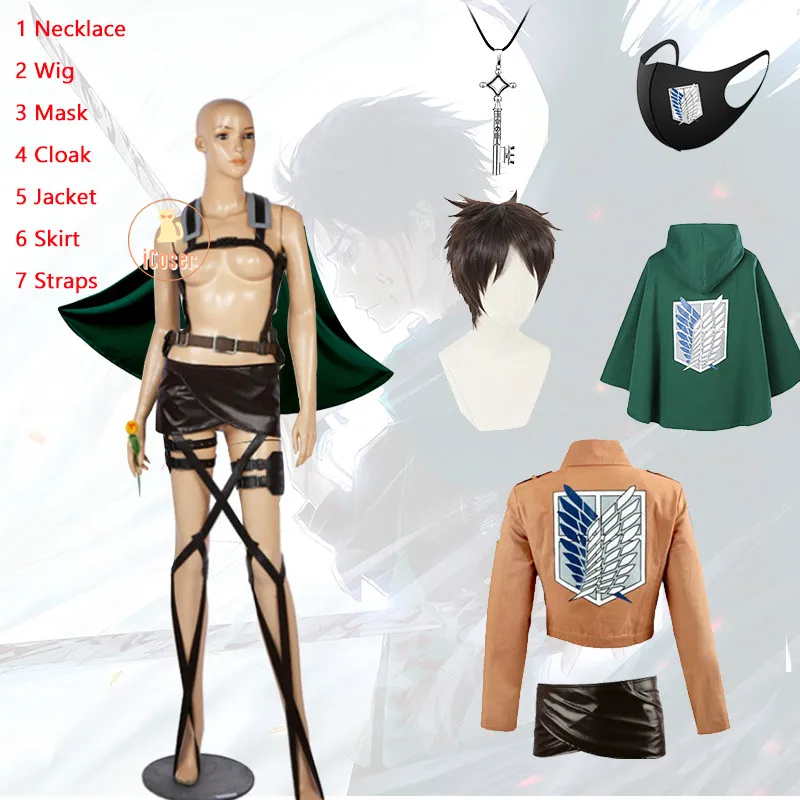 Косплей-костюм Эрена йегера из фильма «атака на Титанов», плащ легиона, куртка, юбка, пояс на лямках, накидка для косплея