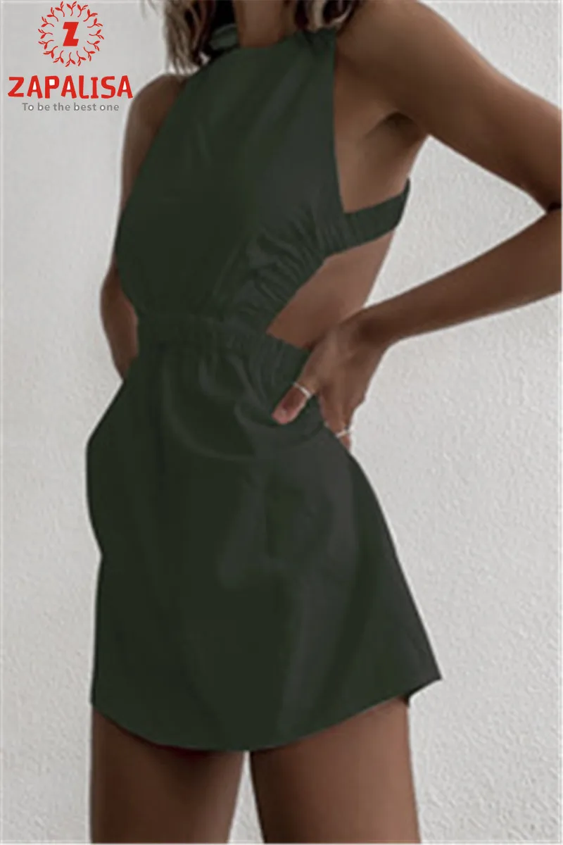 Платье-Карандаш женское без рукавов, пикантное однотонное облегающее мини-платье с открытой спиной и эластичным поясом, с перекрестной завязкой, на лето