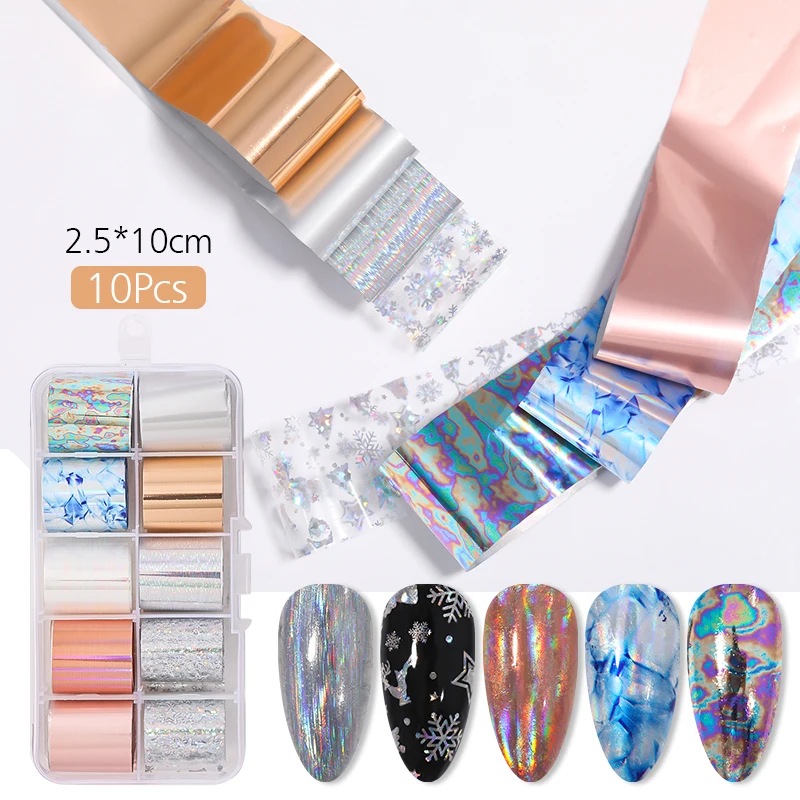 Переводная переводная Фольга для ногтей, 10 рулонов