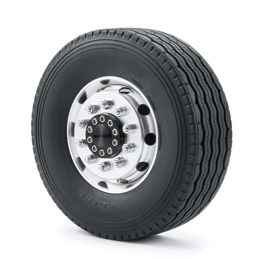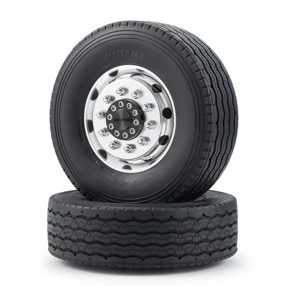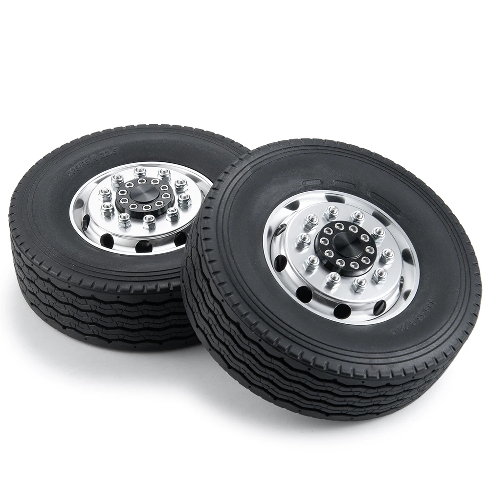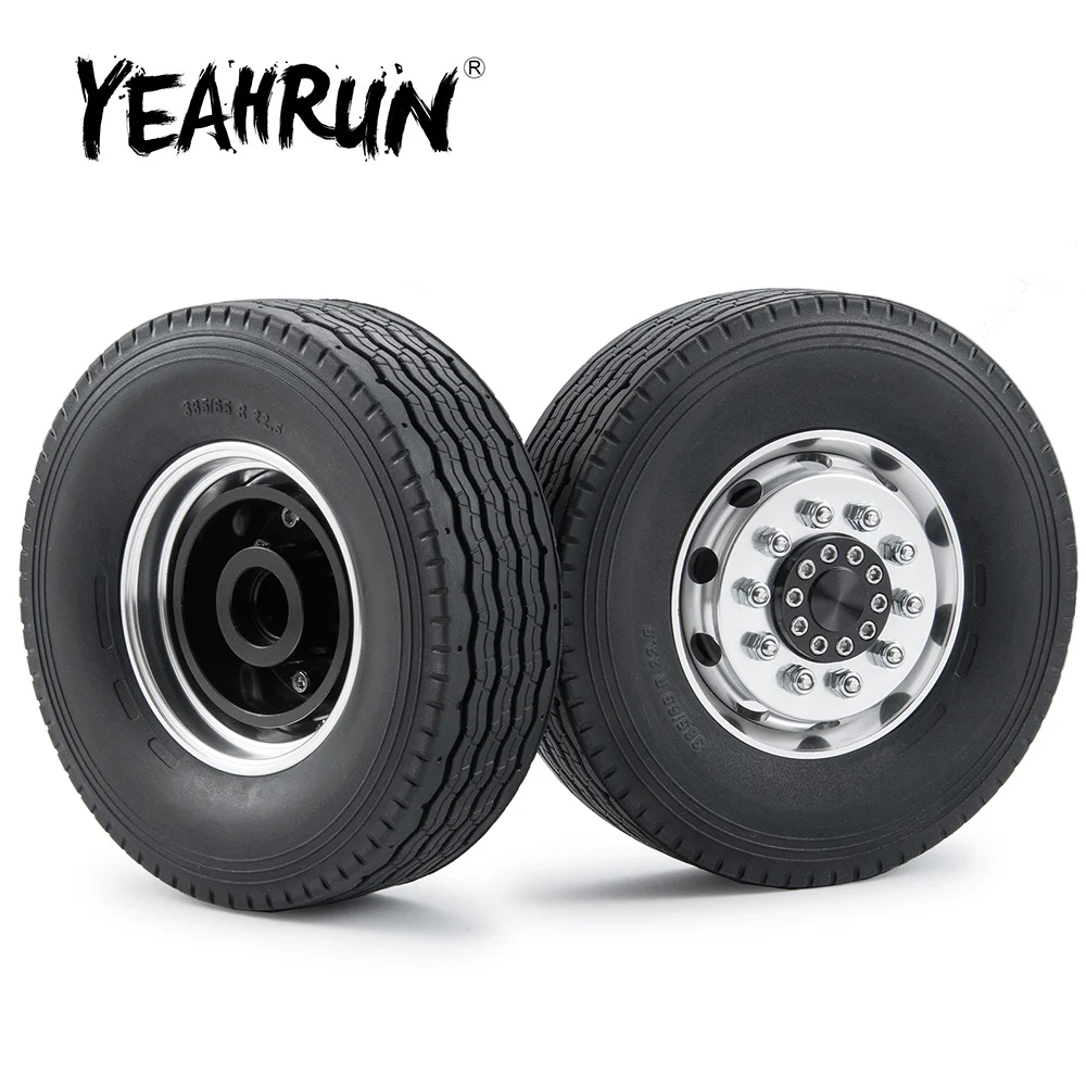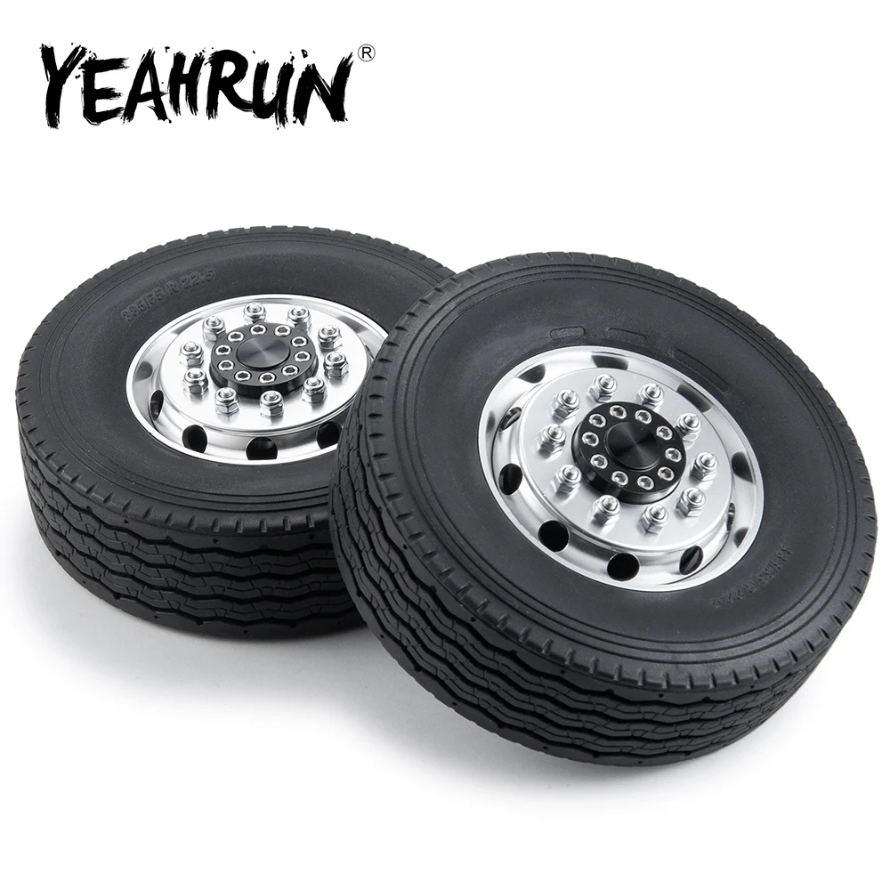 YEAHRUN 2 шт. металлические Передние колесные диски с черными резиновыми шинами шириной 28 мм для 114 Tamiya Радиоуправляемый трейлер, запчасти для трактора, грузовика