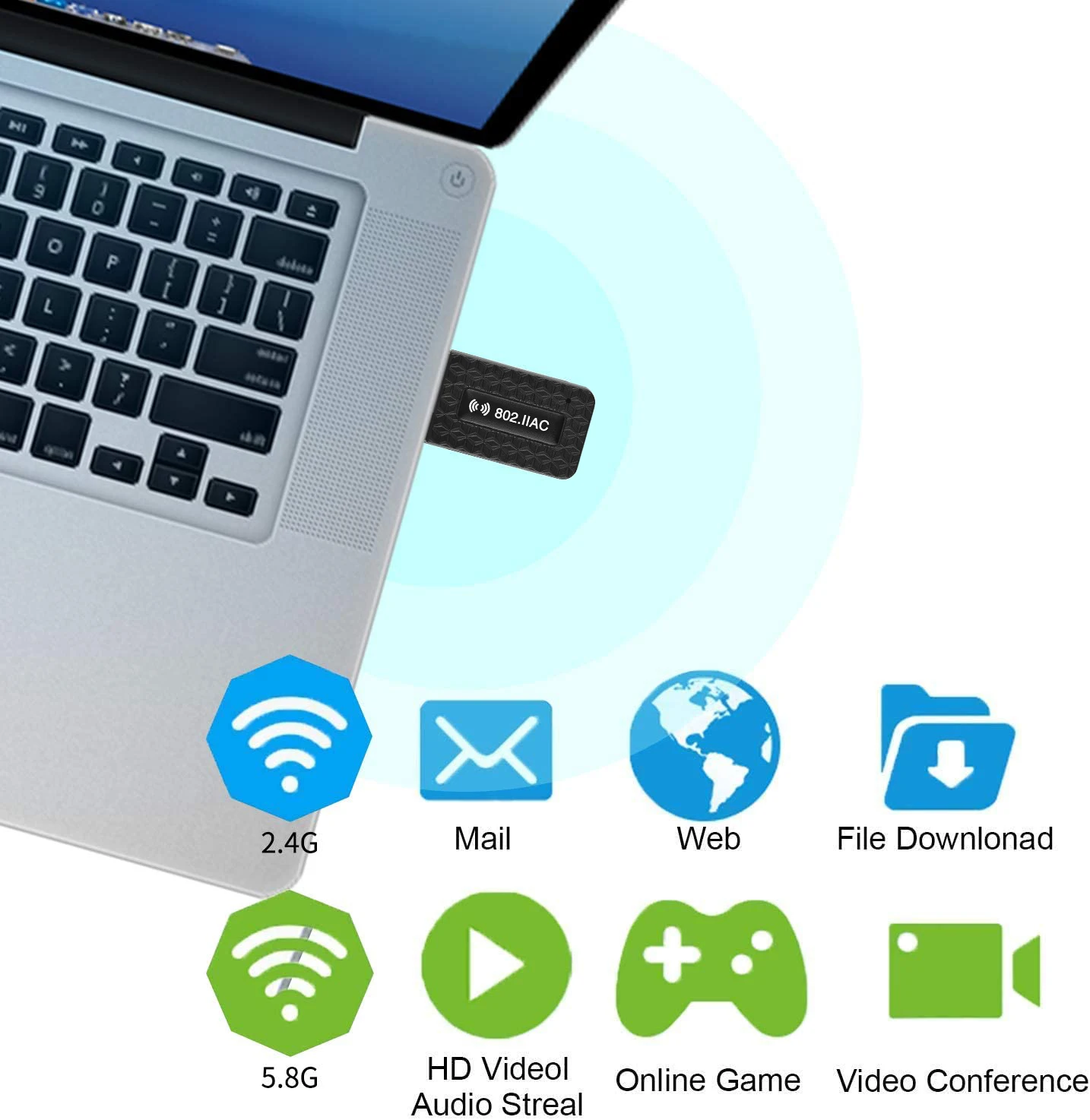 Что я могу сказать, вышеуказанные вопросы не делают устройство справедливым. Размер USB. Windows 10 распознан и установлен драйвер. Ноутбук, который имеет только радио 2,4 ГГц, подключен к моему дому и работает в сети без проблем. У меня есть много usb-разъемов