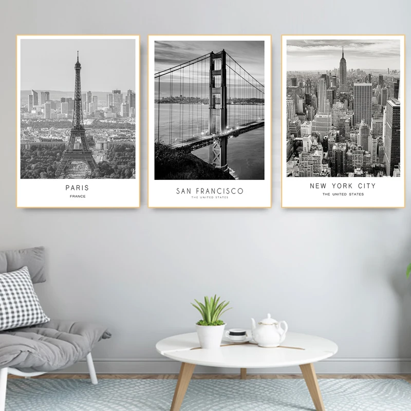 Скандинавский стиль черный белый Париж Лондон Нью-Йорк мир пейзаж х...