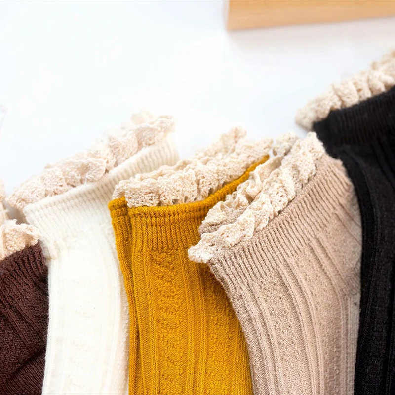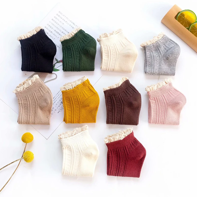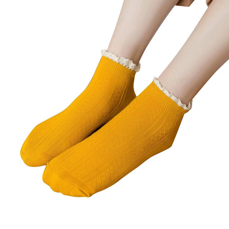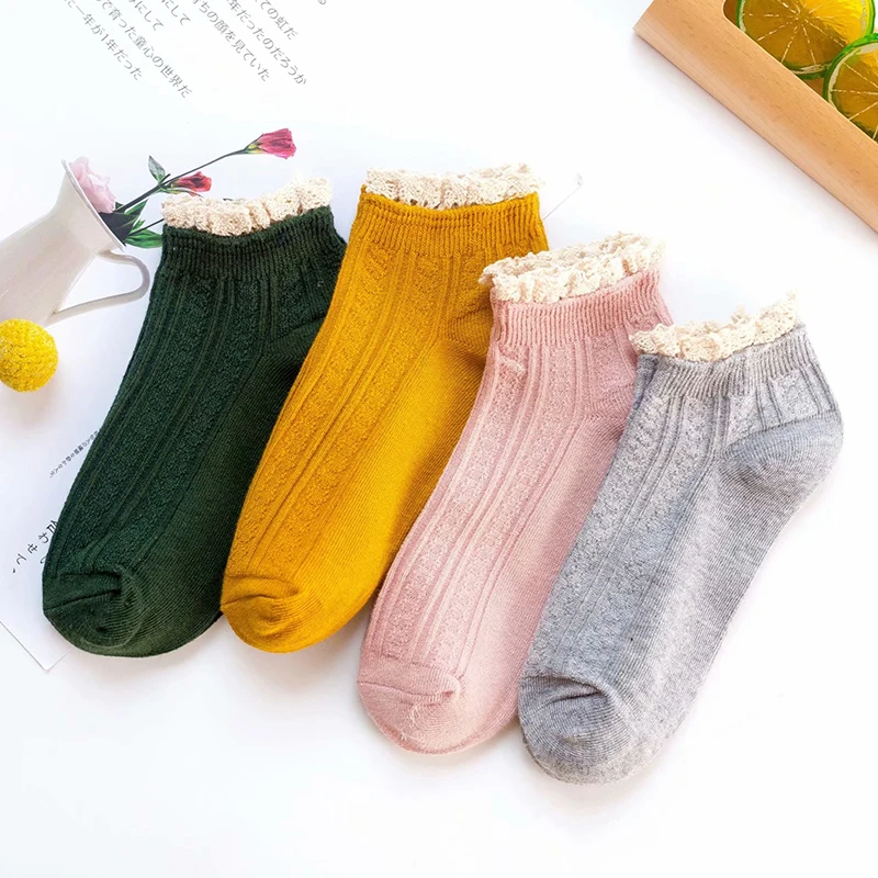 Носки женские кружевные с оборками, милые хлопковые Дышащие Короткие повседневные до щиколотки в Корейском стиле, 4 пары, весна-лето