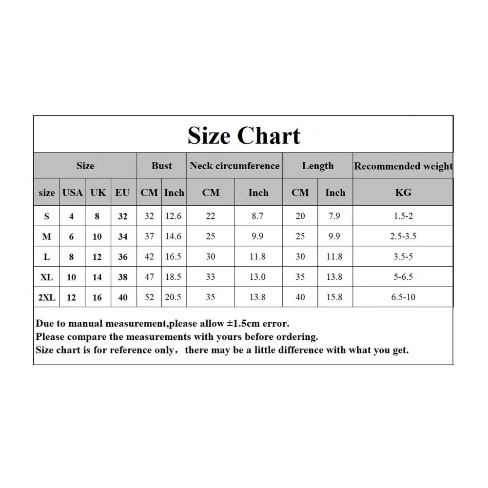 [Наши Размеры 2XL] Бюст: 52 см/20,5 ", обхват шеи: 35/13.8", Длина: 40 см/15,8 ", рекомендуемый Вес: 6,5 кг-10 кг (прибл.)