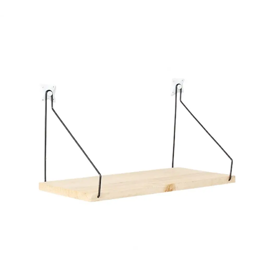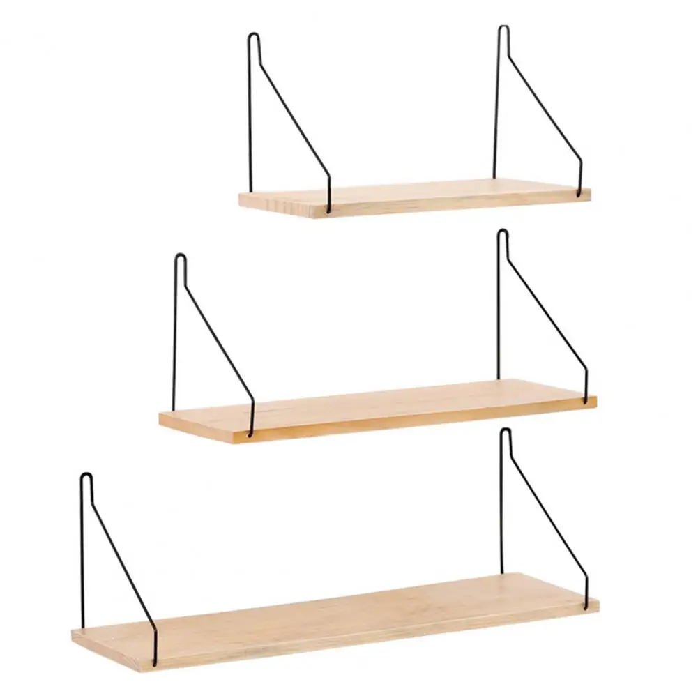 Простой дизайн плавающих полок изготовлен из деревянных досок и железа, и он прочный и полезный.
