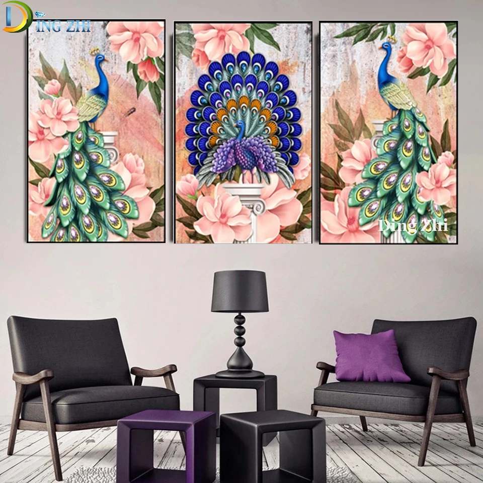 Картина из страз Павлин Пион 5D сделай сам, Набор для вышивки крест...