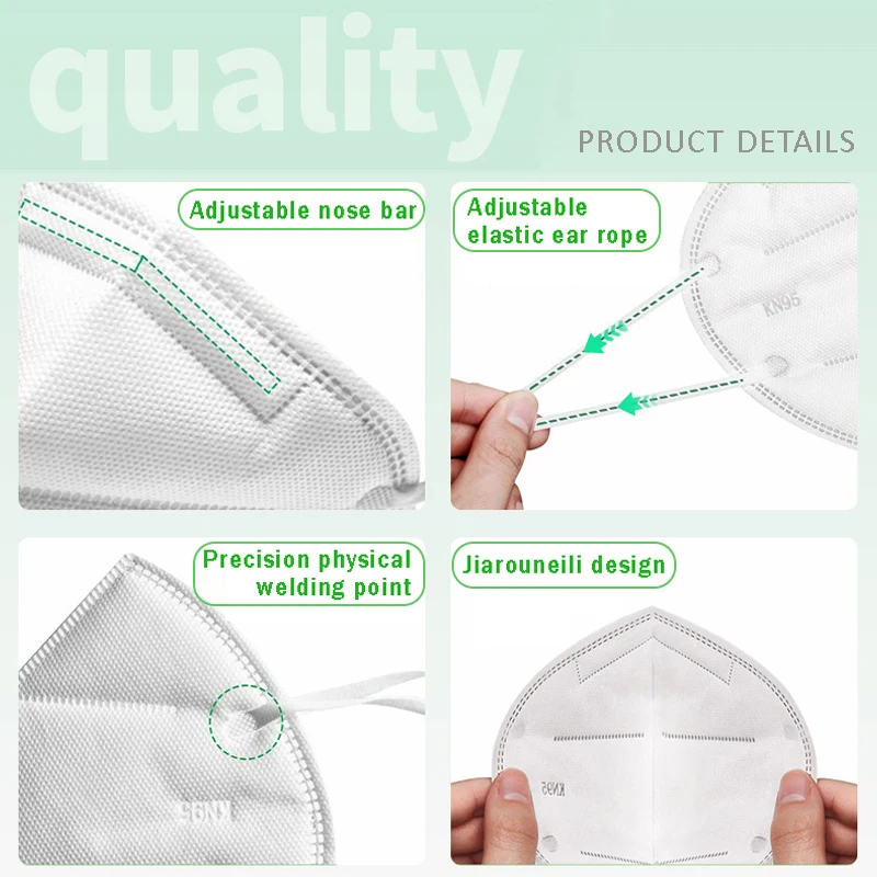 Цветная пятислойная маска KN95Материал: Нетканая ткань + выдувная ткань из расплаваПараметры: 5-слойный материалФункция: Защита от дыма, пыли, выхлопных газов, водонепроницаемость и т. д. Функция маски 1.Пластиковый мостовой столб, изысканный шпон, блок капель, блок много загрязнения 2.Выбирайте высококачественные наушники, прочные, удобные в носке 3.Ультразвуковая технология прошивки, плотное нажатие на края 4.Мягкая приятная для кожи Нетканая ткань используется на внутренней стороне, которая благоприятна для кожи, дышащая и не раздражает Применимая средаЕго можно использовать в период гриппа, в период пыльцы или в загрязненной среде. Он подходит для школ, фабрик и сферы общественного здравоохранения Метод храненияРекомендуется хранить в сухом, вентилируемом и некоррозионном газе, избегать прямых солнечных лучей и держаться подальше от источников огня или легковоспламеняющихся материалов Примечание: наушники черных масок черного цвета, а браслеты других цветов-белого цвета