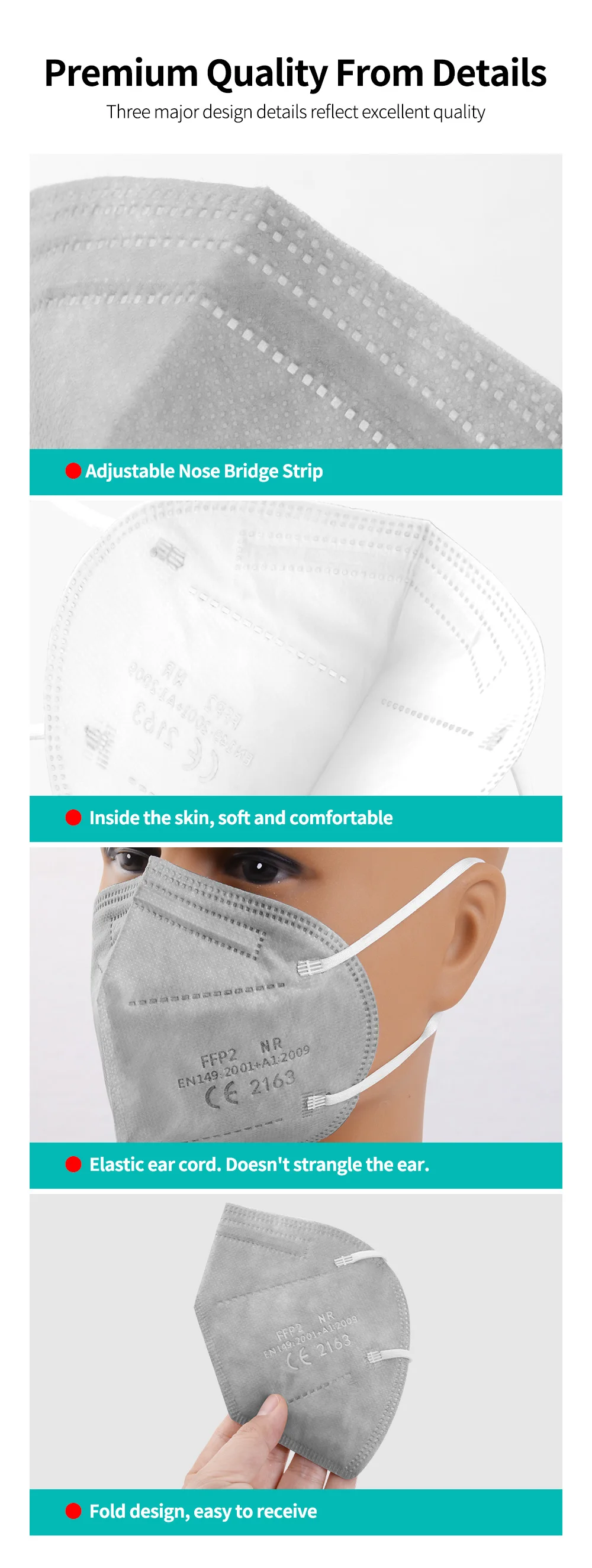 Серый цвет KN95 маска FFP2 Mascarillas маска FFP2mask fpp2 mascherina ffpp2 Mondkapjes 5 Слои фильтр Респиратор маска для лица