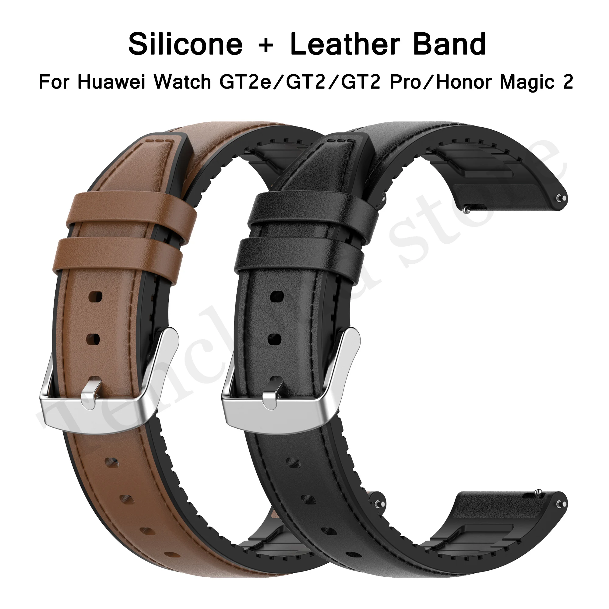 Ремешок из натуральной кожи для часов Huawei GT 2e GT2 Pro, силиконовый ремешок для Honor ES Magic 2, мужской сменный спортивный браслет