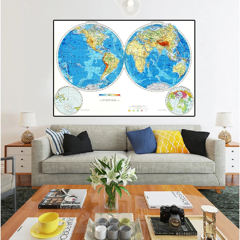 100x150 см карта мира, физическая карта, Нетканая карта мира Испани...