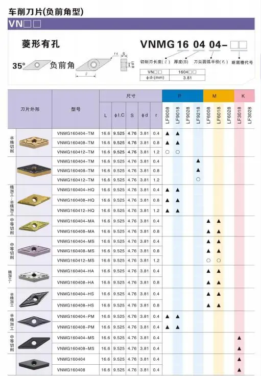 GC5115: лезвие имеет высокое качество износостойкости и прочности, с использованием обычного железа, ковкого железа, отделки и полу-отделки.Диапазон обработки: обработка чугуна, чугунаОсобенности:· Поскольку материал чугуна зависит от его обработки, лопасти чугуна обрабатываются в гранулированной форме, поэтому нет необходимости учитывать дизайн разбивания микросхем. Лезвие без узора имеет лучшую прочность· Хорошая отделка, плавное удаление стружки, острый и износостойкий
