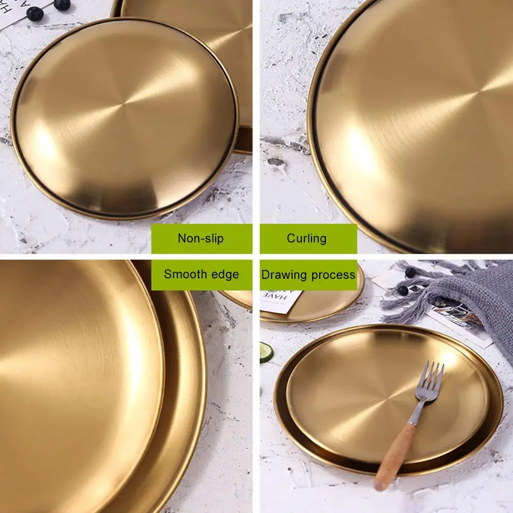 Столовая тарелка 14/17/20/23/26 см, модная Высококачественная Золотая круглая форма, посуда для мяса, десерта, пиццы, фруктов, поднос, оптовая продажа, Лидер продаж