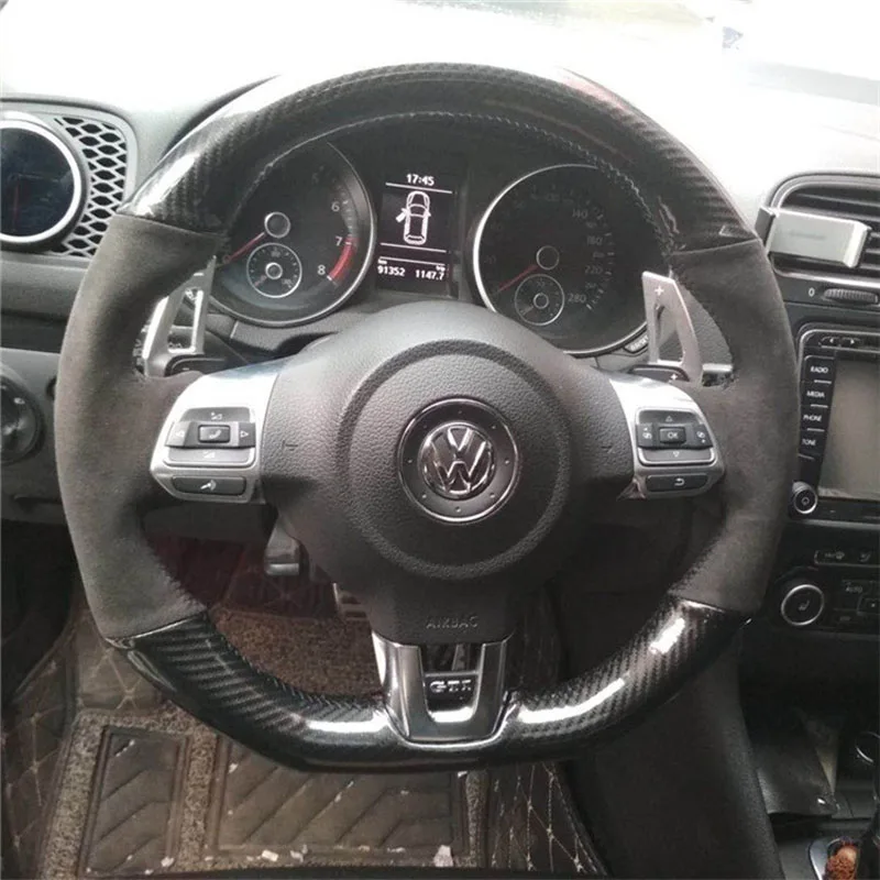 Чехол 3D5D из углеродного волокна и черной замши для рулевого колеса, подходит для Volkswagen Golf 6 GTI MK6 Scirocco R