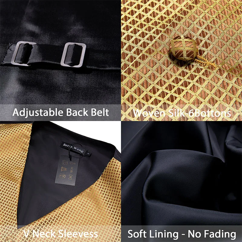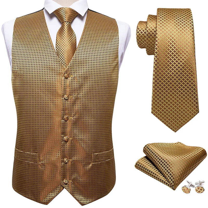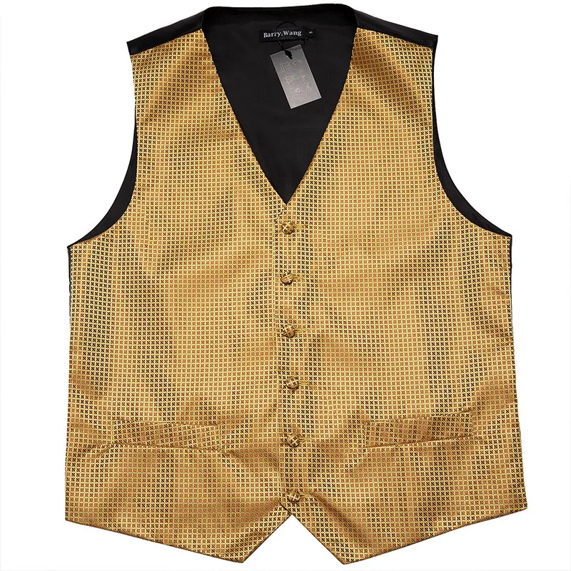 Мужской классический золотой однотонный жаккардовый Шелковый жилет платок галстук Карманный платок для костюма набор Барри. Ван