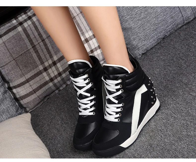 Женские кроссовки с заклепками, черные или белые кроссовки на скрытой танкетке, повседневные теннисные туфли, обувь для тренировок, 2021
