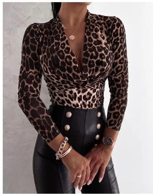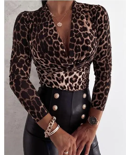 Сексуальное платье с глубоким v-образным вырезом, с леопардовым принтом, рубашка с длинным рукавом Блузка с узором, надевается через голову тигра "Звездное небо" с буквенным принтом женская офисная одежда топы