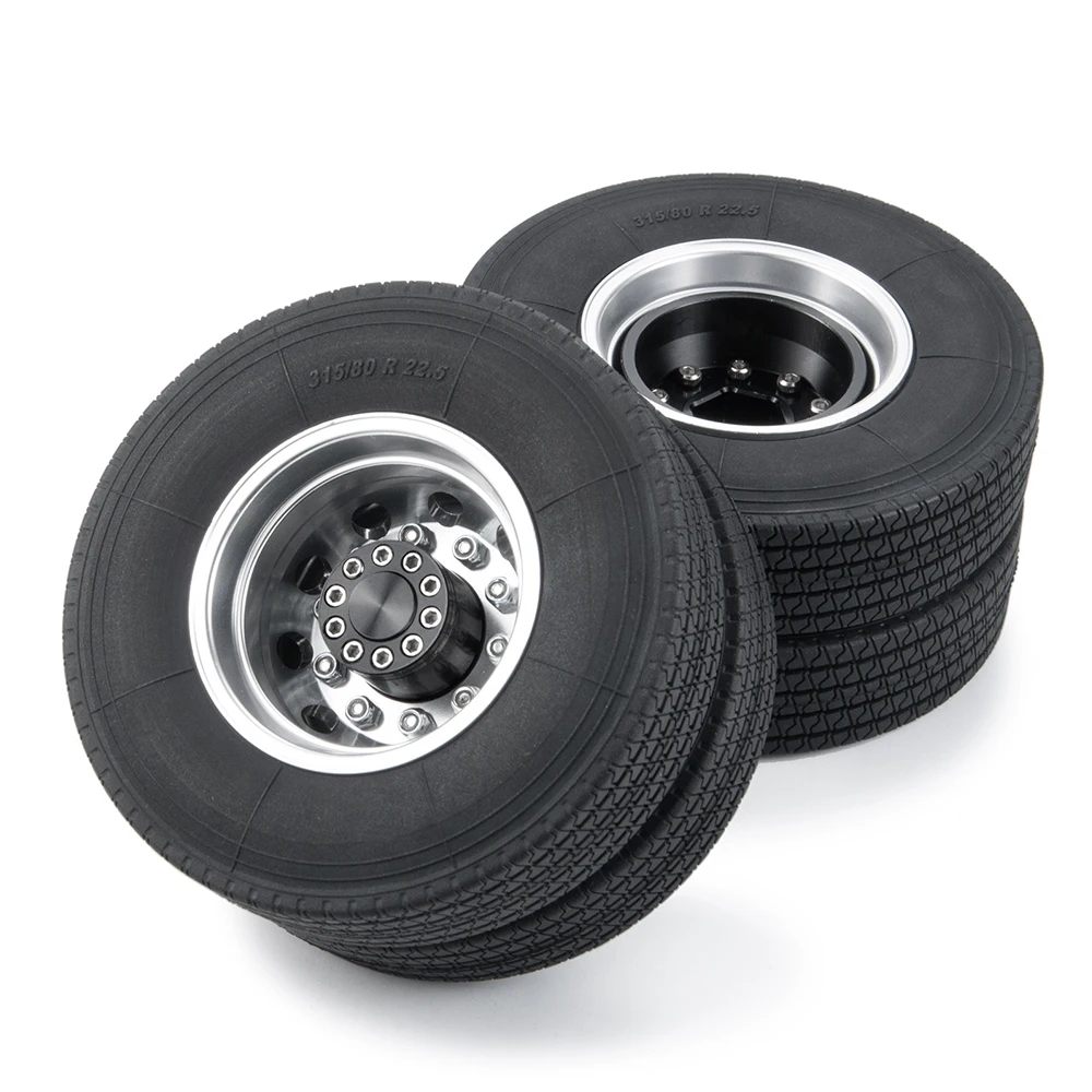 Ступицы заднего колеса YEAHRUN из металлического сплава, Ширина 22 мм, черные резиновые шины для 114 Tamiya Радиоуправляемый трейлер, тягачей, грузовиков, автозапчастей