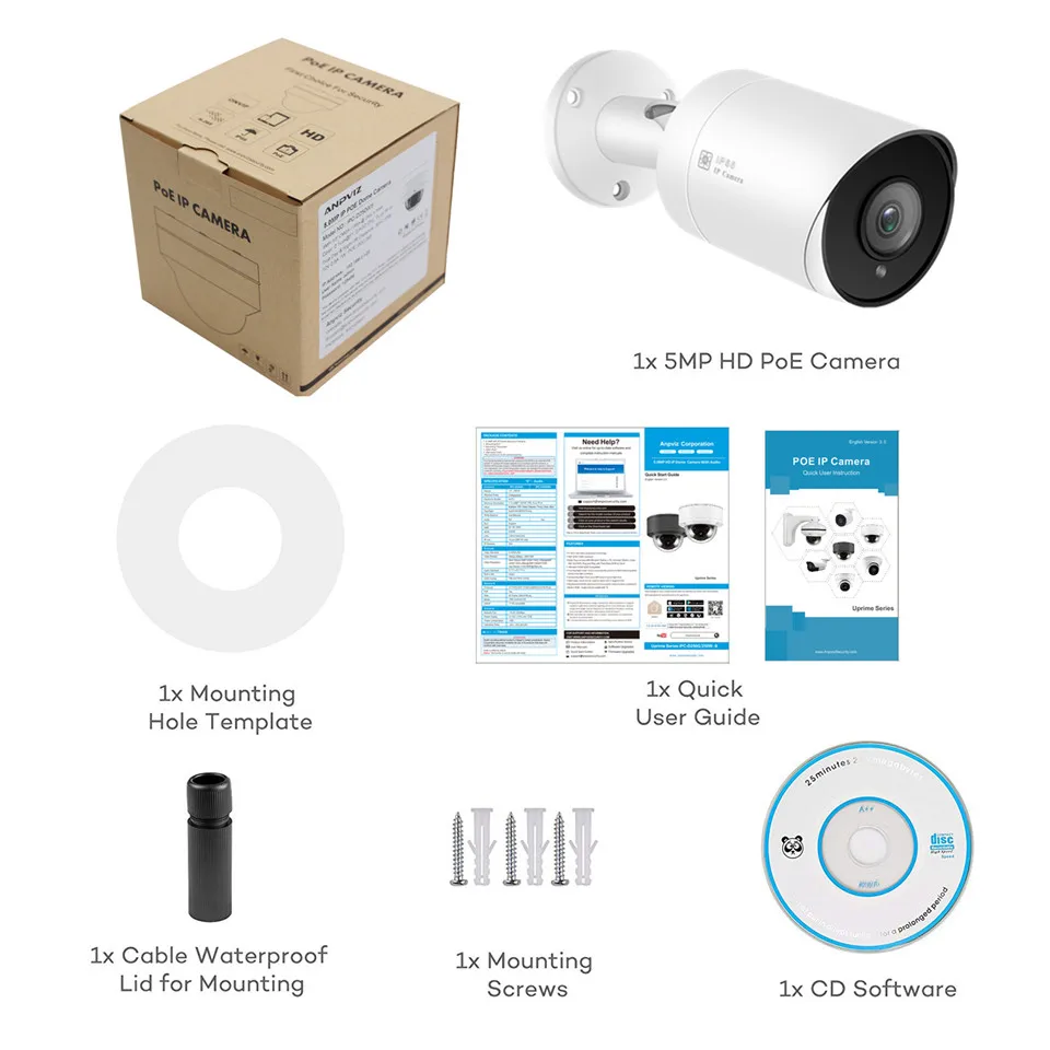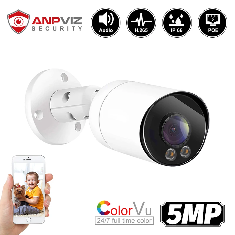 IP-камера Anpviz, 5 Мп, цветная, POE, ИК, 30 м, встроенный микрофон, аудио IP66, H.265