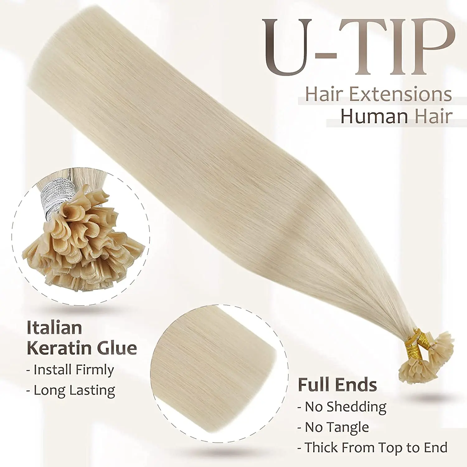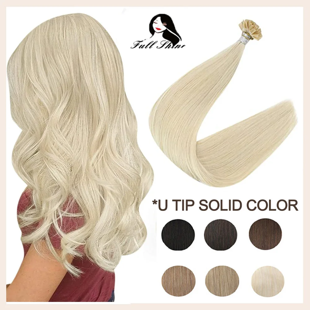 Полный блеск для наращивания волос на кончиках ногтей, однотонный блонд, u-образный наконечник, кератиновые клеевые бусины, предварительно скрепленные 50 г, 50 стендов, машина Remy