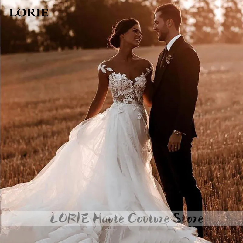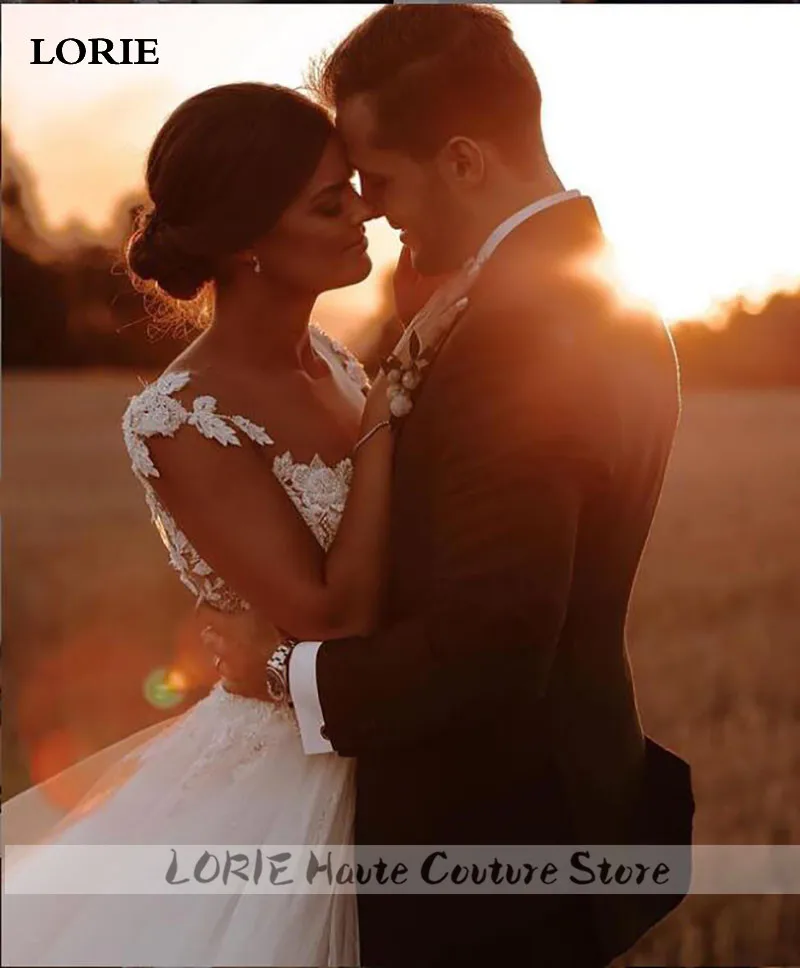 LORIE винтажное ТРАПЕЦИЕВИДНОЕ Тюлевое свадебное платье с кружевными рукавами женское Очаровательное длинное платье 2021 свадебное платье