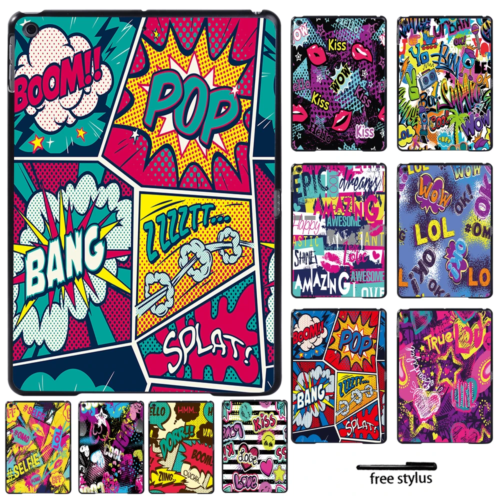 Тонкий чехол для Apple IPad 56782019 дюйма, IPad 2, 3, 4, Mini 1, 2, 3, 4, 5, с рисунком граффити, + Бесплатный стилус