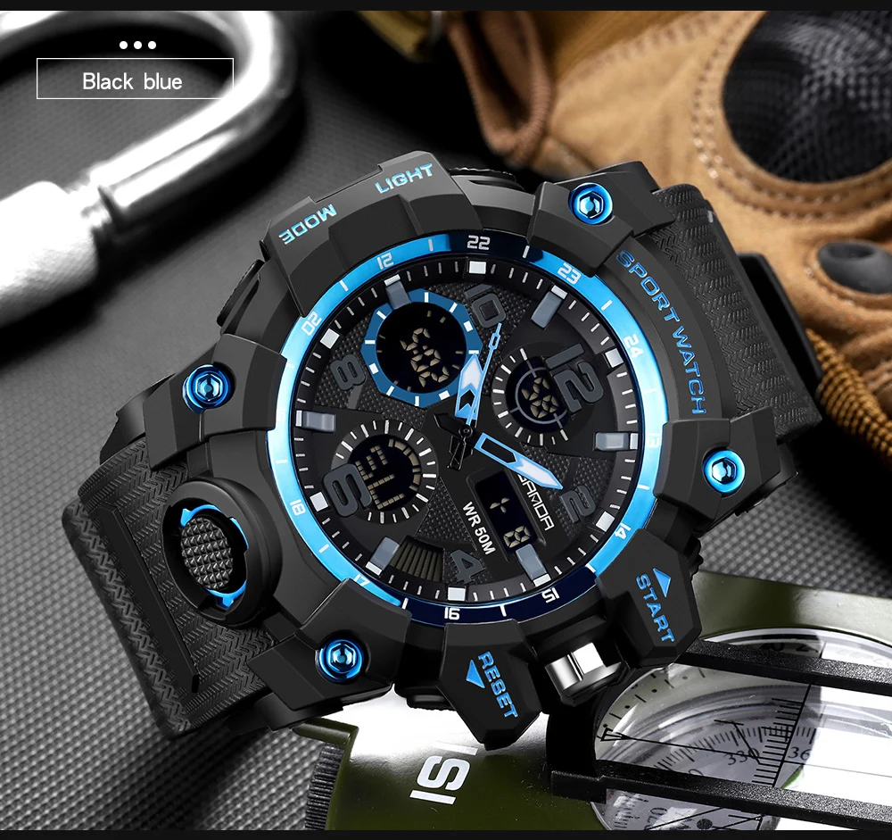 Часы мужские кварцевые с двойным дисплеем, водонепроницаемые, в стиле милитари, 2021
