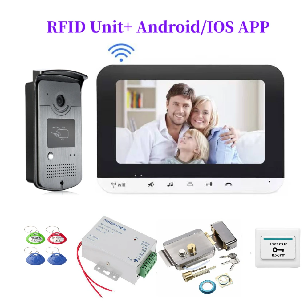 7 Ihch Wi-Fi видео-дверной звонок металлический Камера с ИК Видео дверной звонок Поддержка RFID разблокировки для ночного видения Wifi Управление