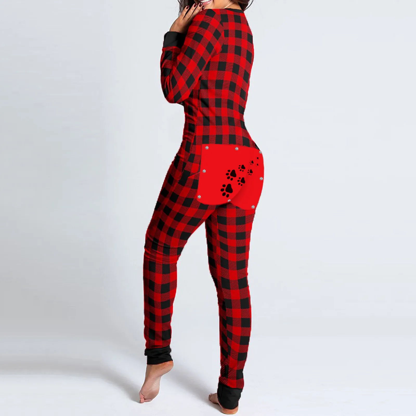 Женская пижама на пуговицах с клапаном на пуговицах, комбинезон для взрослых в клетку, на День святого Валентина, зимняя эластичная Пижама на пуговицах, цельнокроеная Пижама