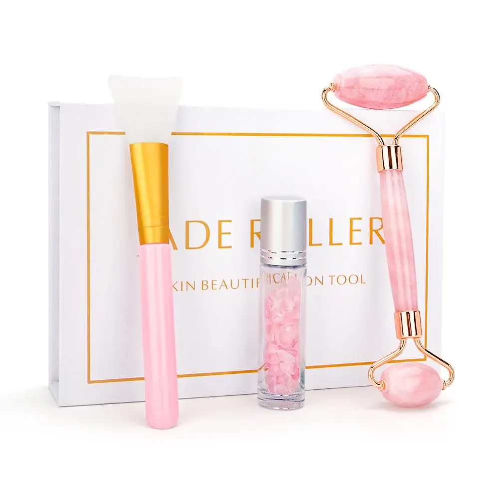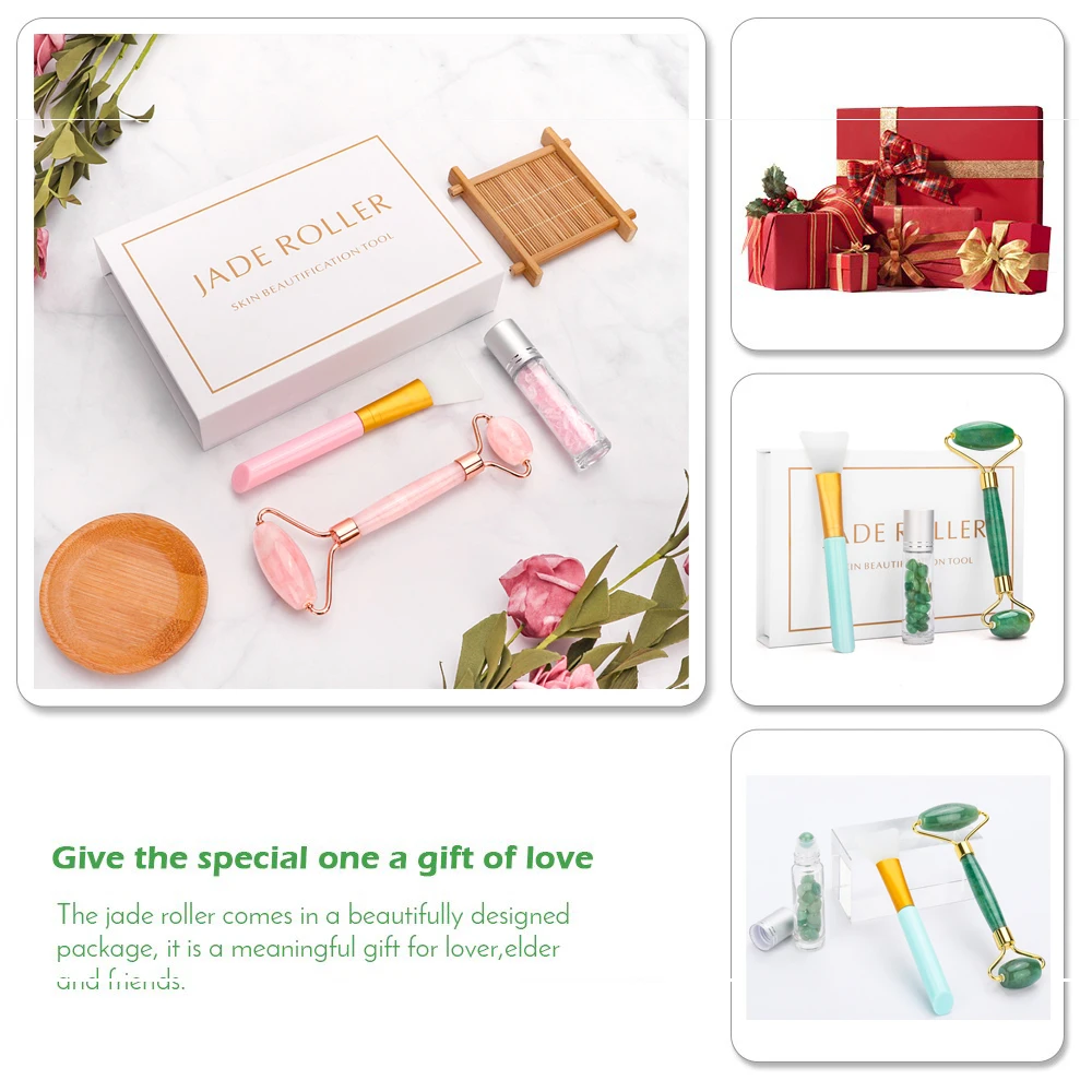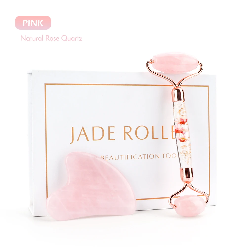 Нефритовый ролик для массажа лица, лифтинга, натуральный розовый кварц, натуральный Нефритовый камень, удаление морщин, подтяжка кожи, красота лица, похудение