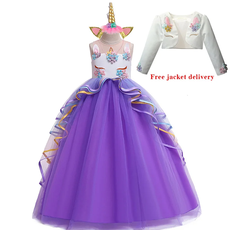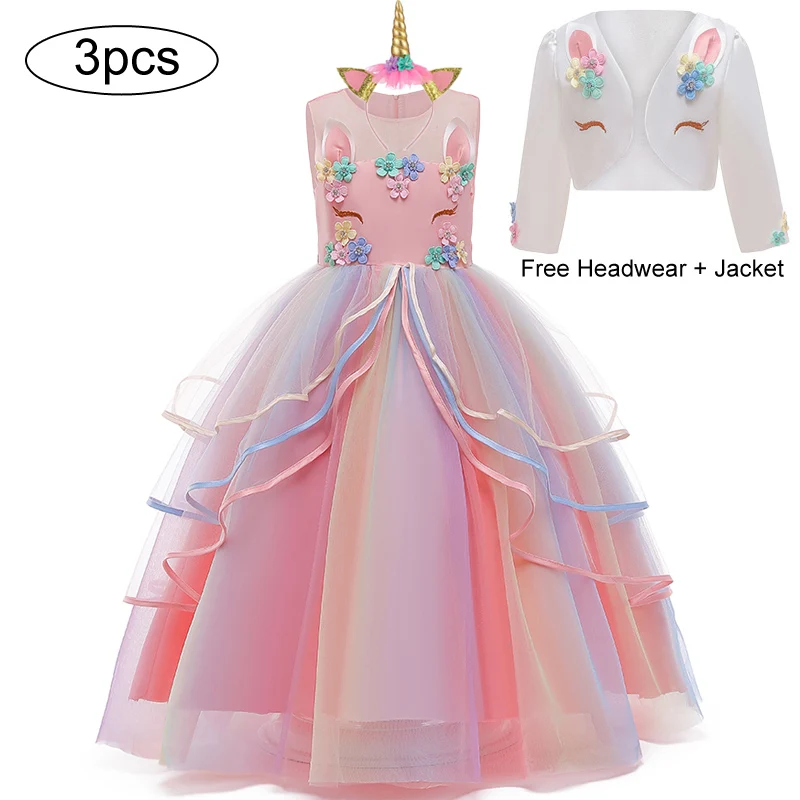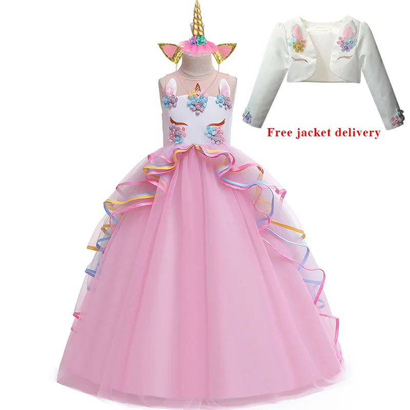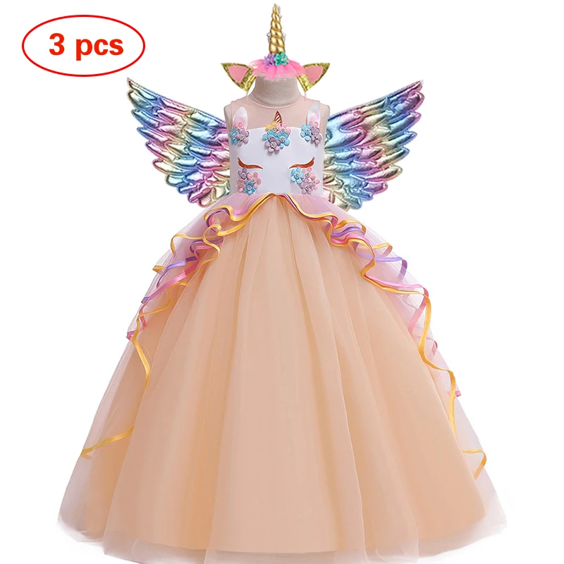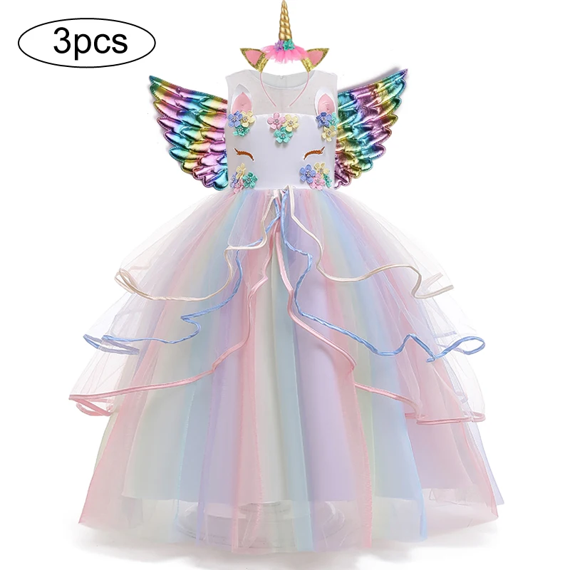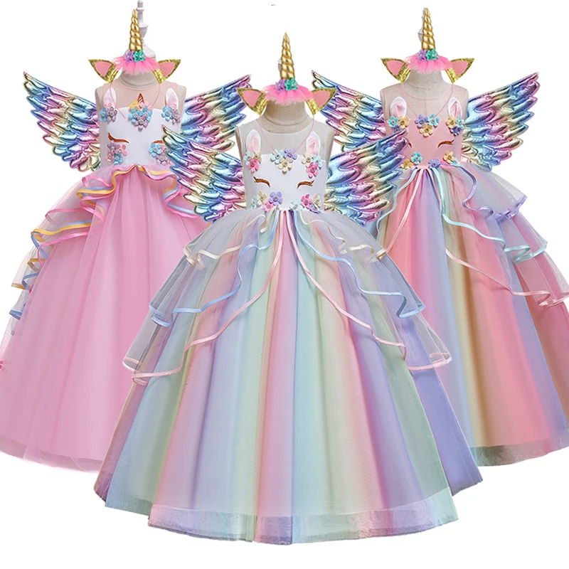 Платье для девочек, на Возраст 3 -14 лет, с единорогом