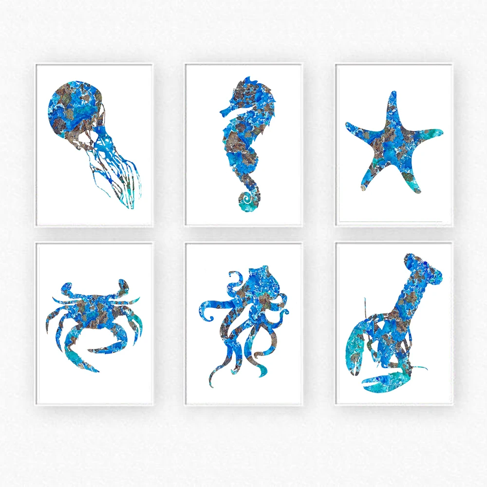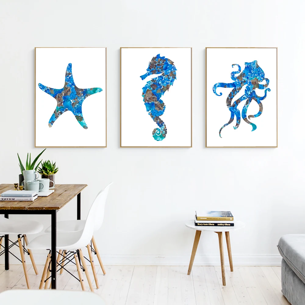 Картина на холсте Осьминог морские винтажные постеры и принты осьминог синий Кракен морская лошадь картина деревенский Декор для ванной