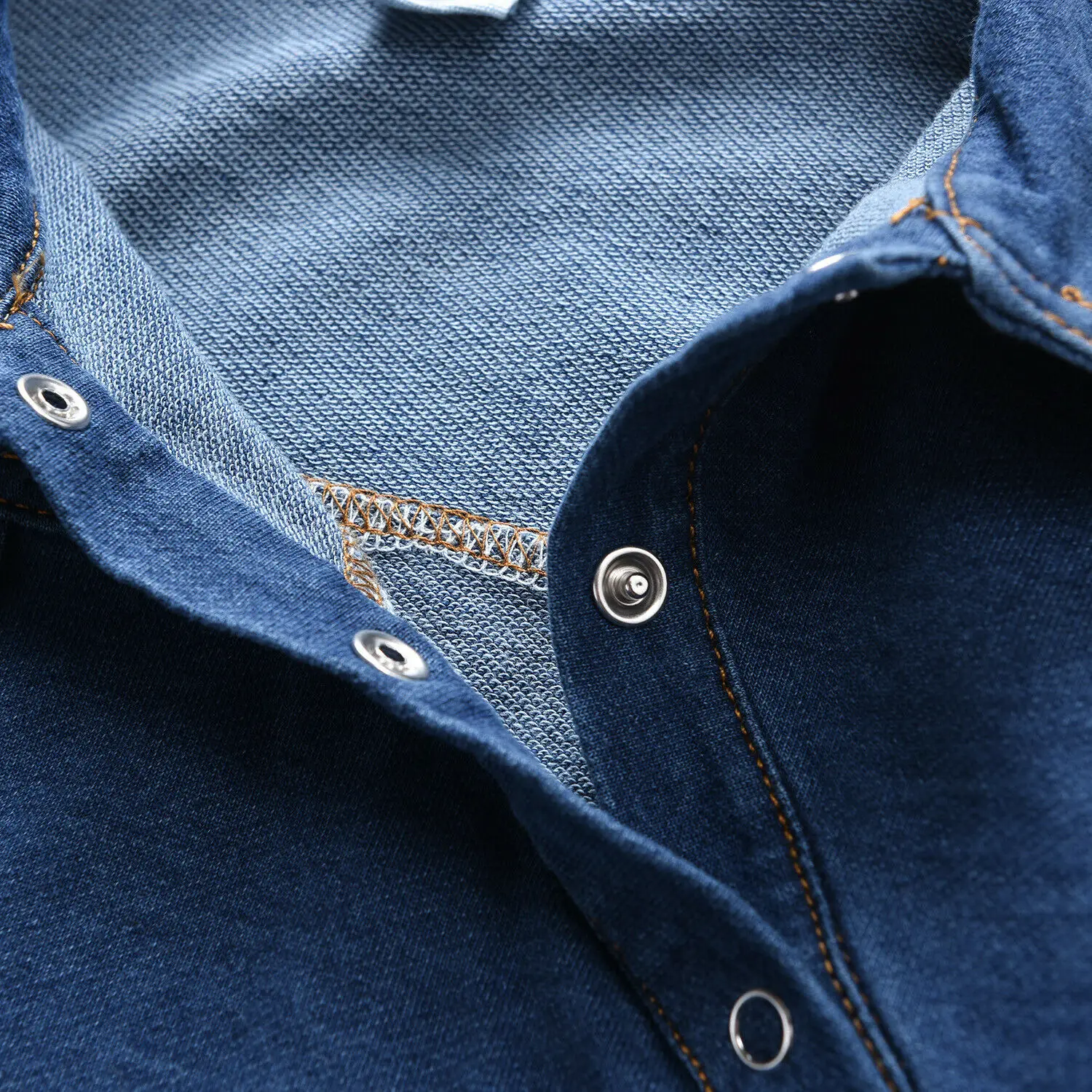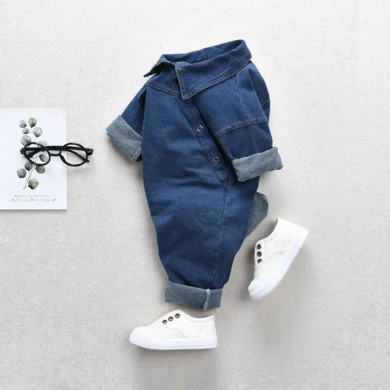 Комбинезон детский джинсовый От 0 до 4 лет с длинными рукавами, карманами и отложным воротником