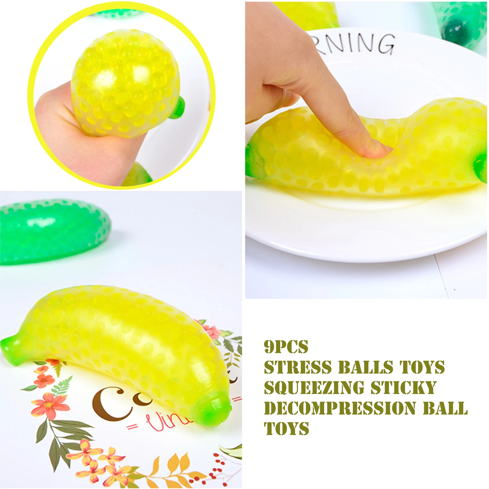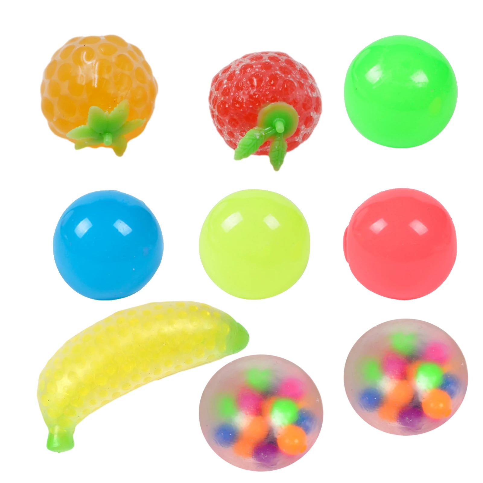 9 шт. мячи для снятия стресса игрушки фрукты Клубника банан сжатие липкий декомпрессии мяч надувные игрушки для детей и взрослых