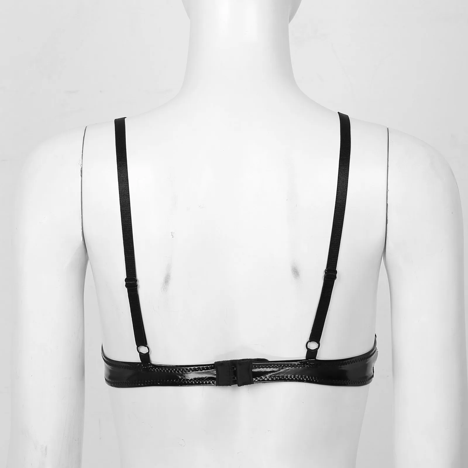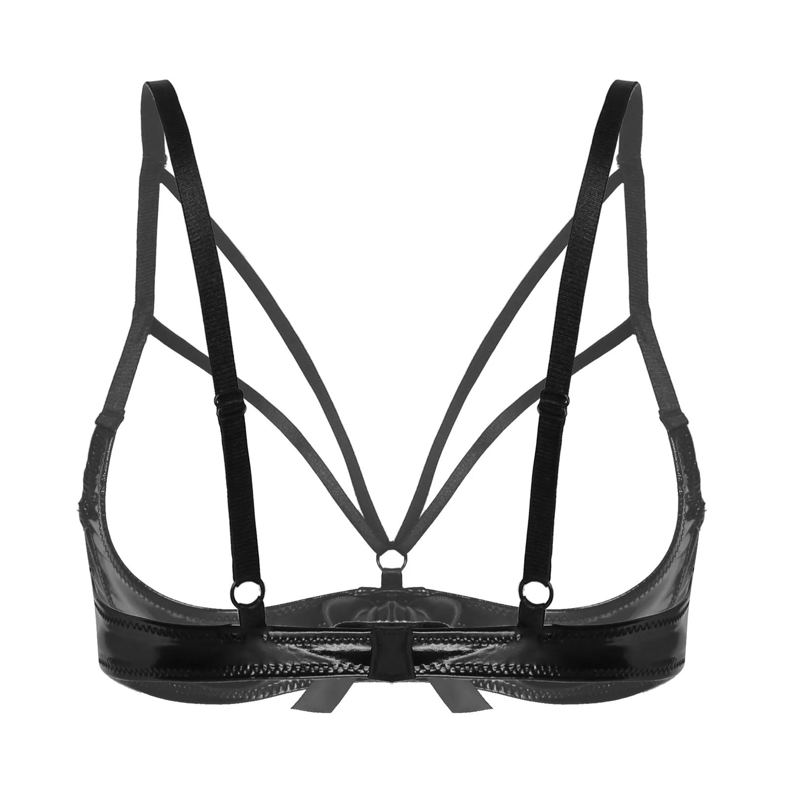 Женские бюстгальтеры из лакированной кожи на бретельках с открытой чашкой, бюстгальтер на косточках с бантом, топы, бюстгальтер с регулируемыми бретельками, сексуальное нижнее белье