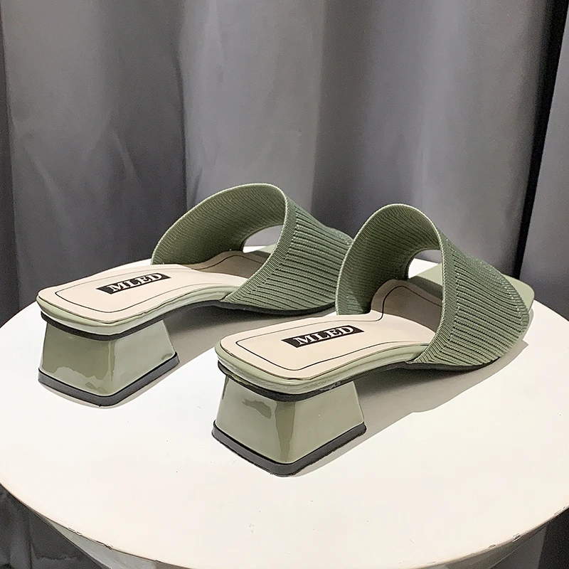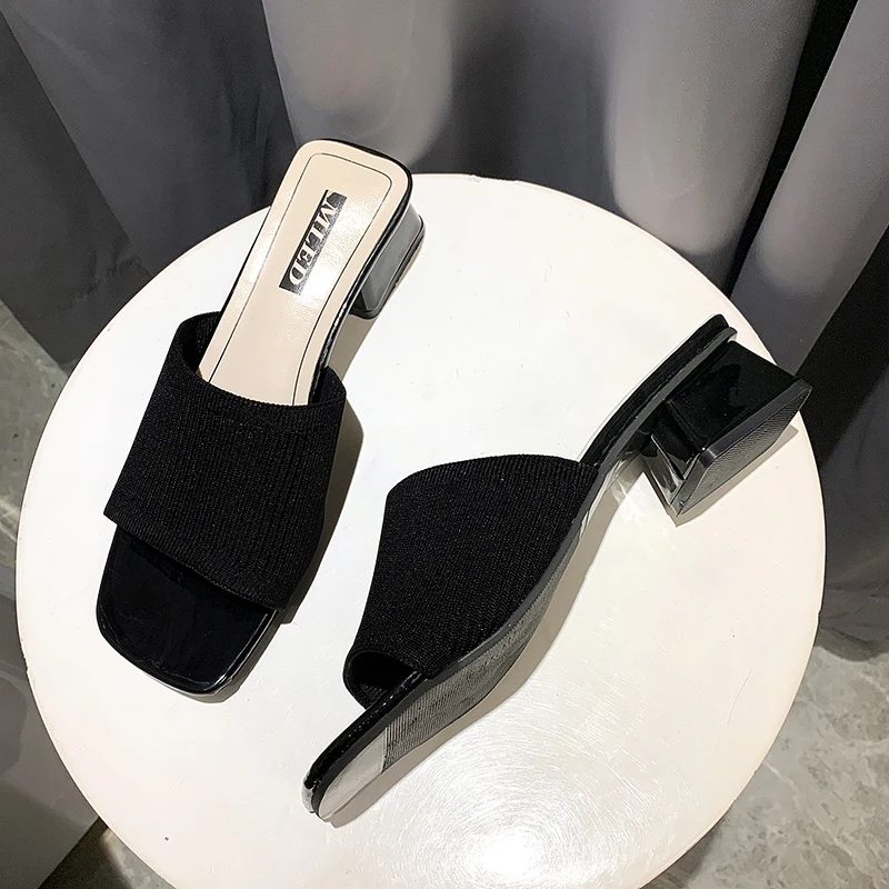Женская обувь; Шлепанцы для улицы; Сезон лето; Новинка; Модные трикотажные Стрейчевые сандалии на толстой подошве с открытым носком; AC659