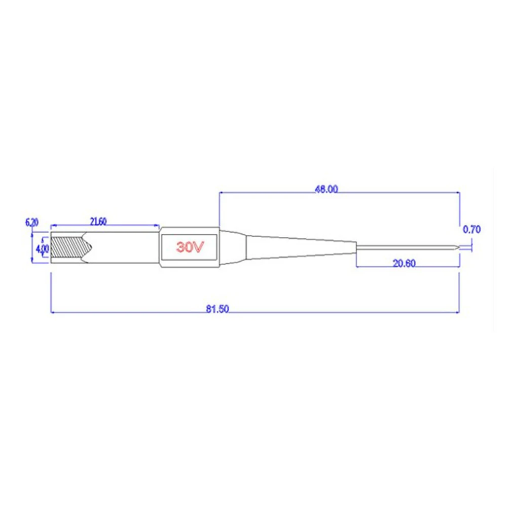 Острая и твердая игла из нержавеющей стали (диаметр 0,7мм) может легко проколоть поверхность кабеля, но не разрушить его. Он может быть широко использован о неразрушающем тестировании кабеля в авто, телекоммуникациях, промышленности или тестировании внутри вилки.