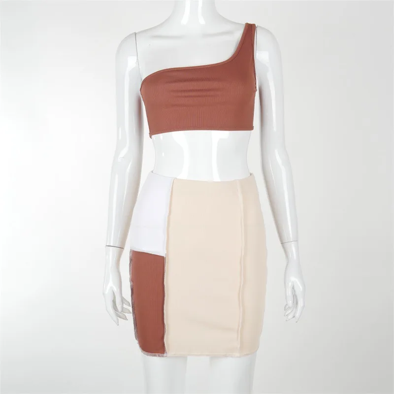 Hugcitar 2021 футболка без рукавов с одним плечом, юбка в рубчик, комплект из 2 предметов, весенне-летний женский повседневный спортивный костюм
