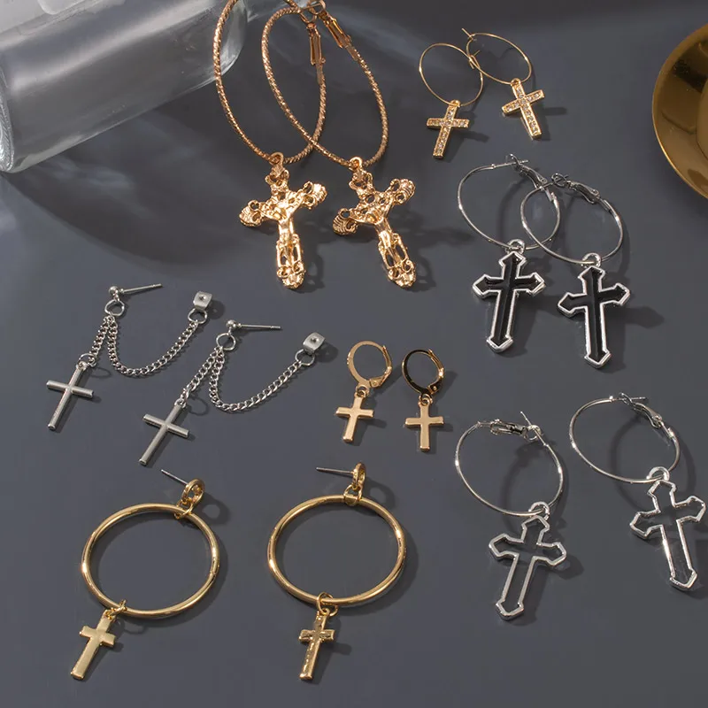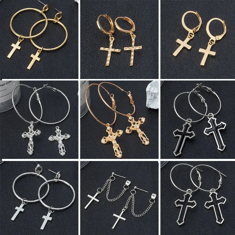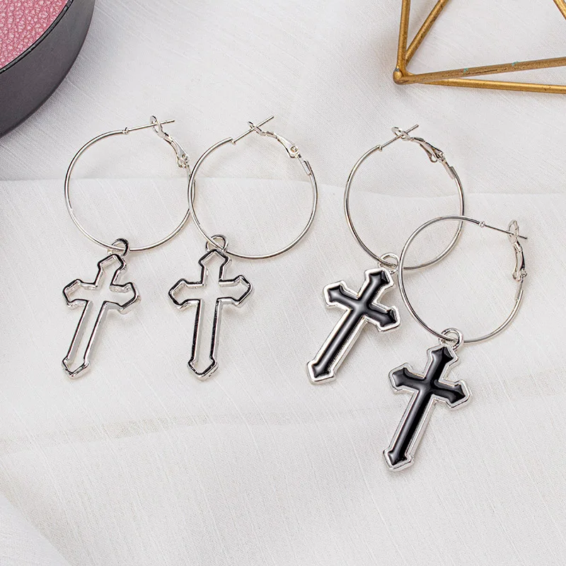 Готический брелок для ключей, модные серьги-кресты для женщин, из нержавеющей стали, мужские, металлические, висячие, хип-хоп, панк украшения, подарки унисекс
