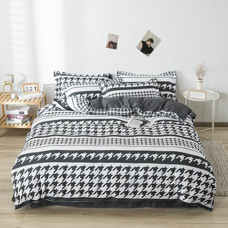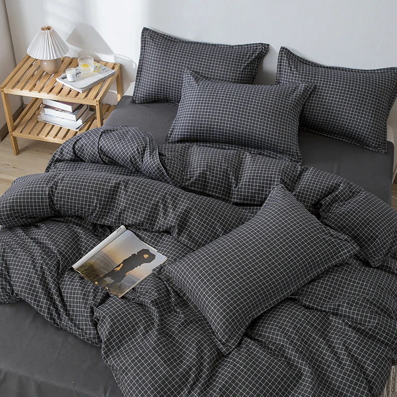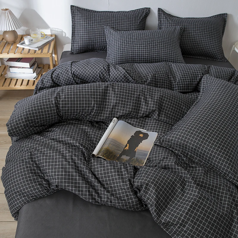 Постельное белье в нордическом клетку, пододеяльник, наволочка, простыня, 150, односпальное, двуспальное, двуспальное, современное постельное белье, черное, белое, геометрическое постельное белье
